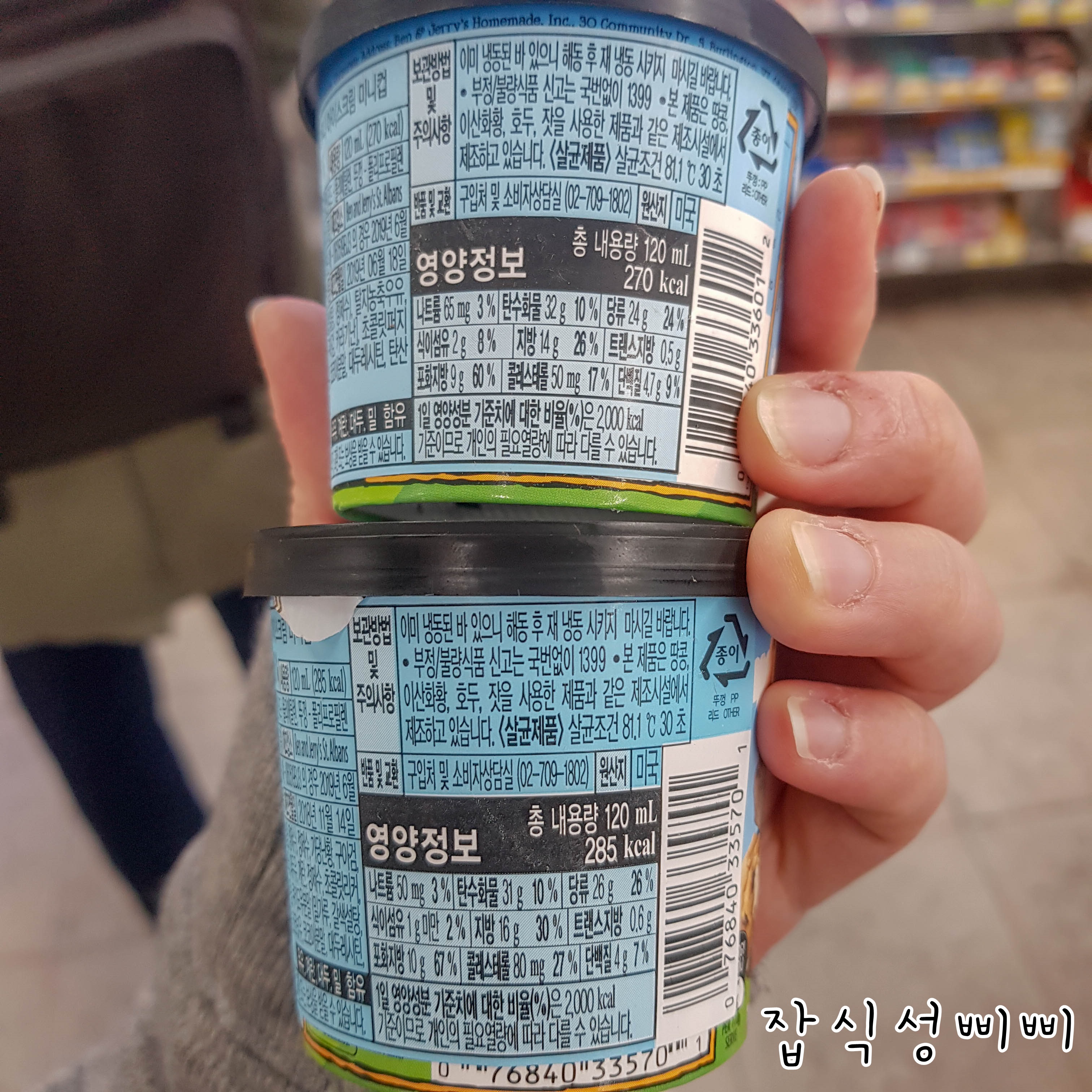 요 쪼끄만 미니컵이 칼로리는 270kcal, 285kcal 로 거의 300kcal에 달하네요;;; ㅋㅋㅋㅋ