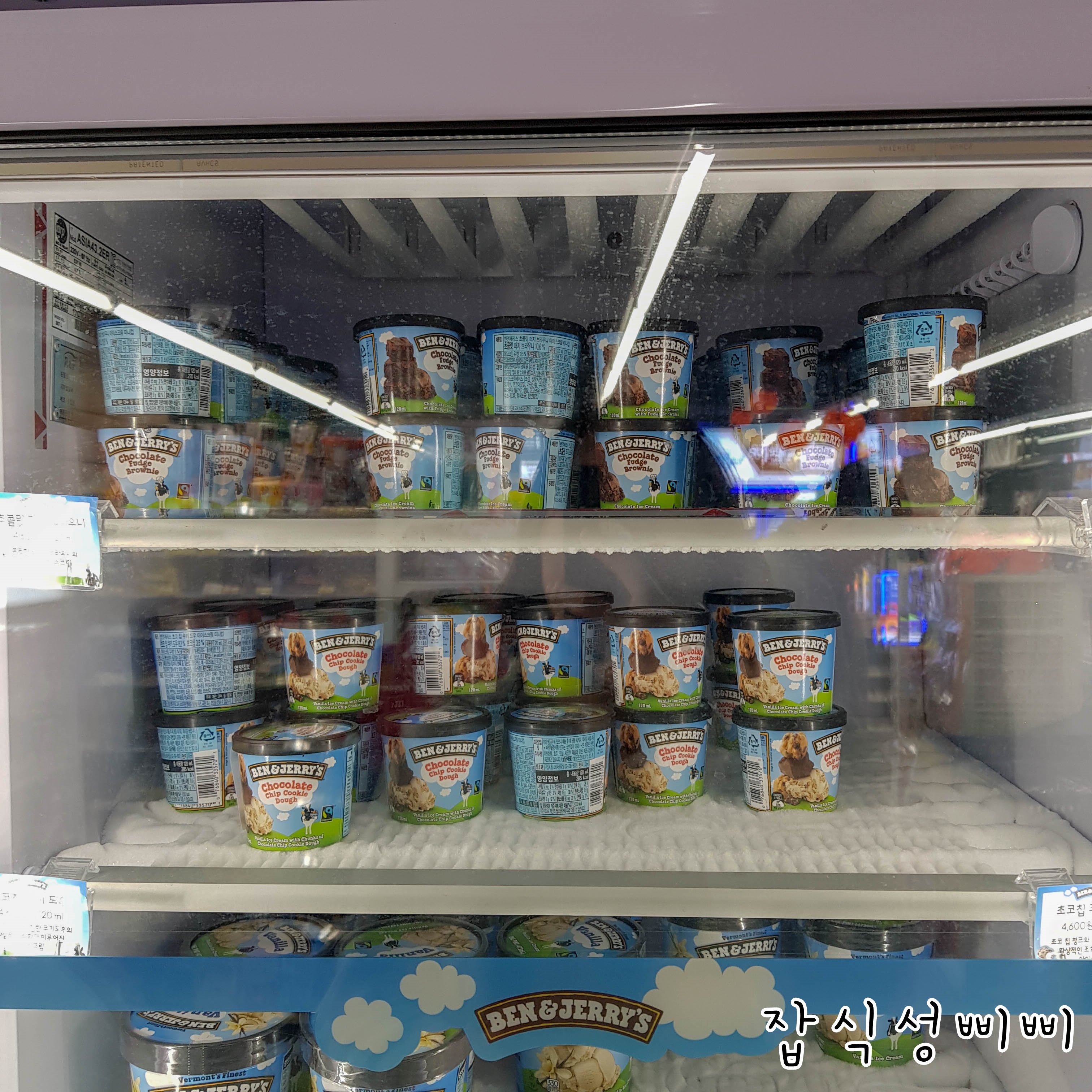 들어오자마자 오른쪽에 벤앤제리스의 아이스크림이 가득가득 들어있는 모습입니다 ㅠㅠㅠㅠ