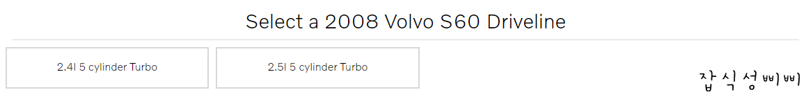 2008년에 S60 모델을 선택하니, 2.4T와 2.5T로 엔진을 선택하는 창이 뜨네요~