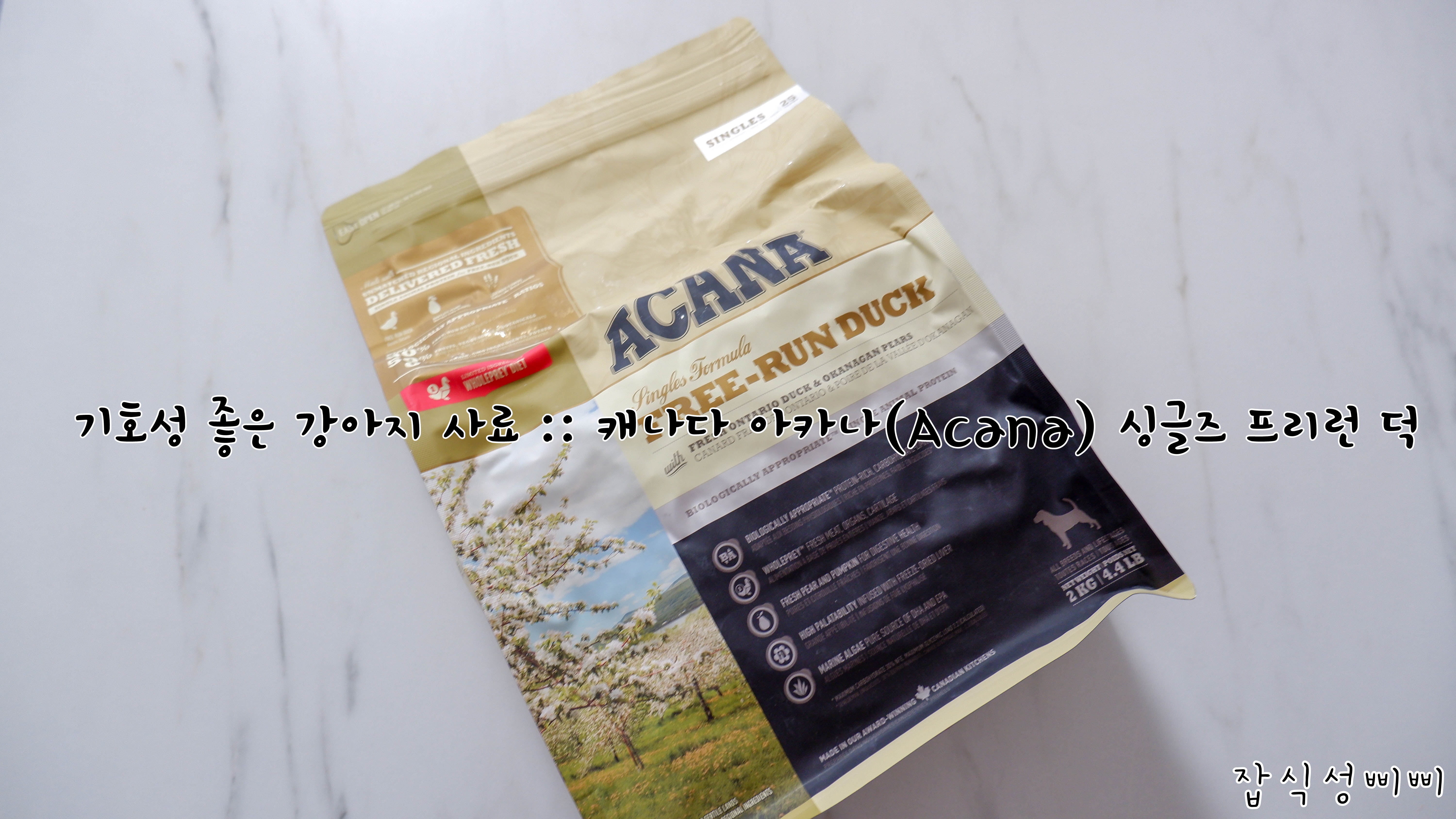 어느정도 성분이 좋은 것 같아서 선택한 사료입니다. 알러지가 있는 아이들을 위한 이상적인 사료라고 하더라구요.