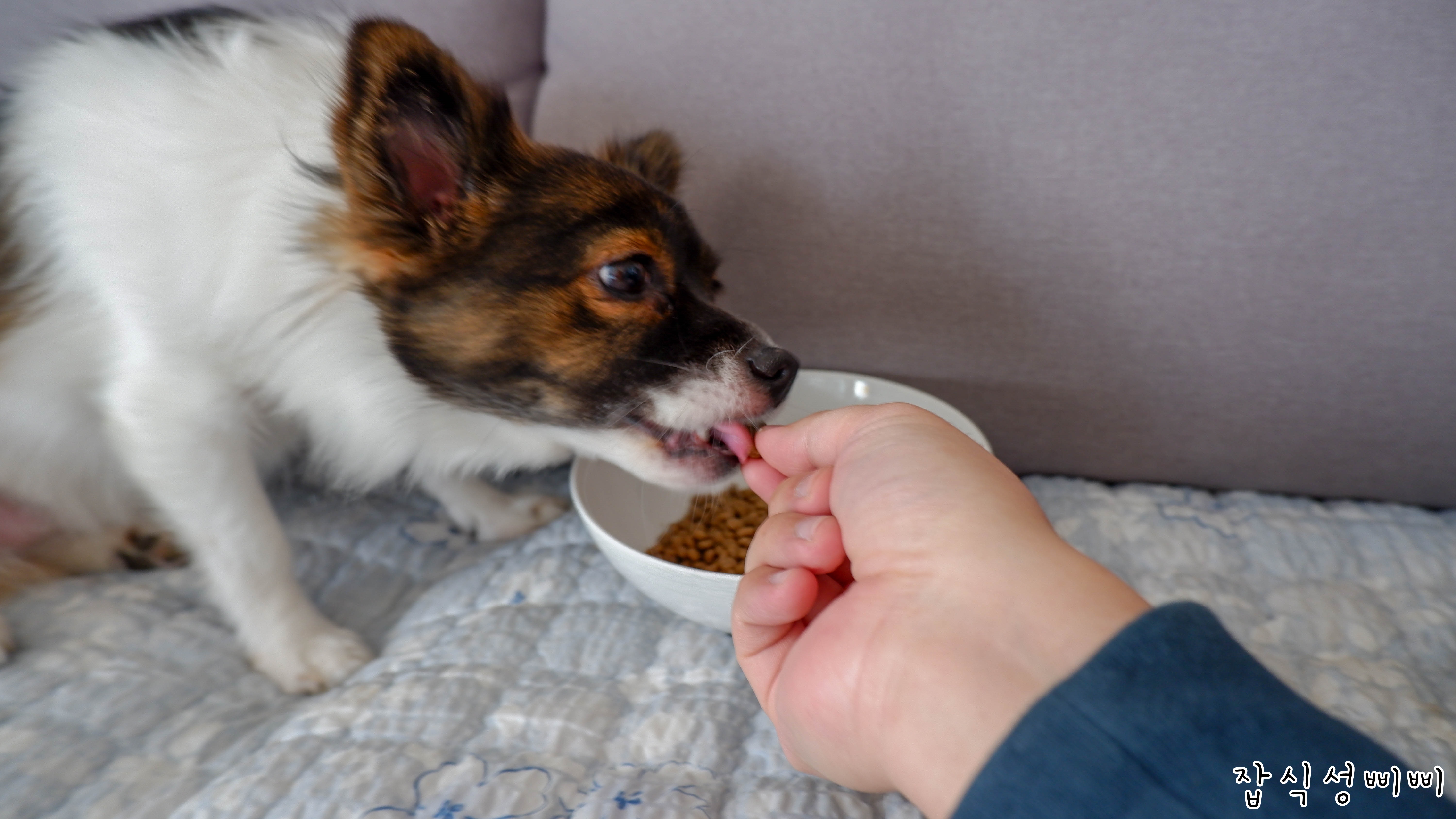 이빨이 좋지 않은 겨울이는 조금 큰 사료를 주니 잇몸이 아픈지 깨갱 하네요 ㅠ..ㅠ