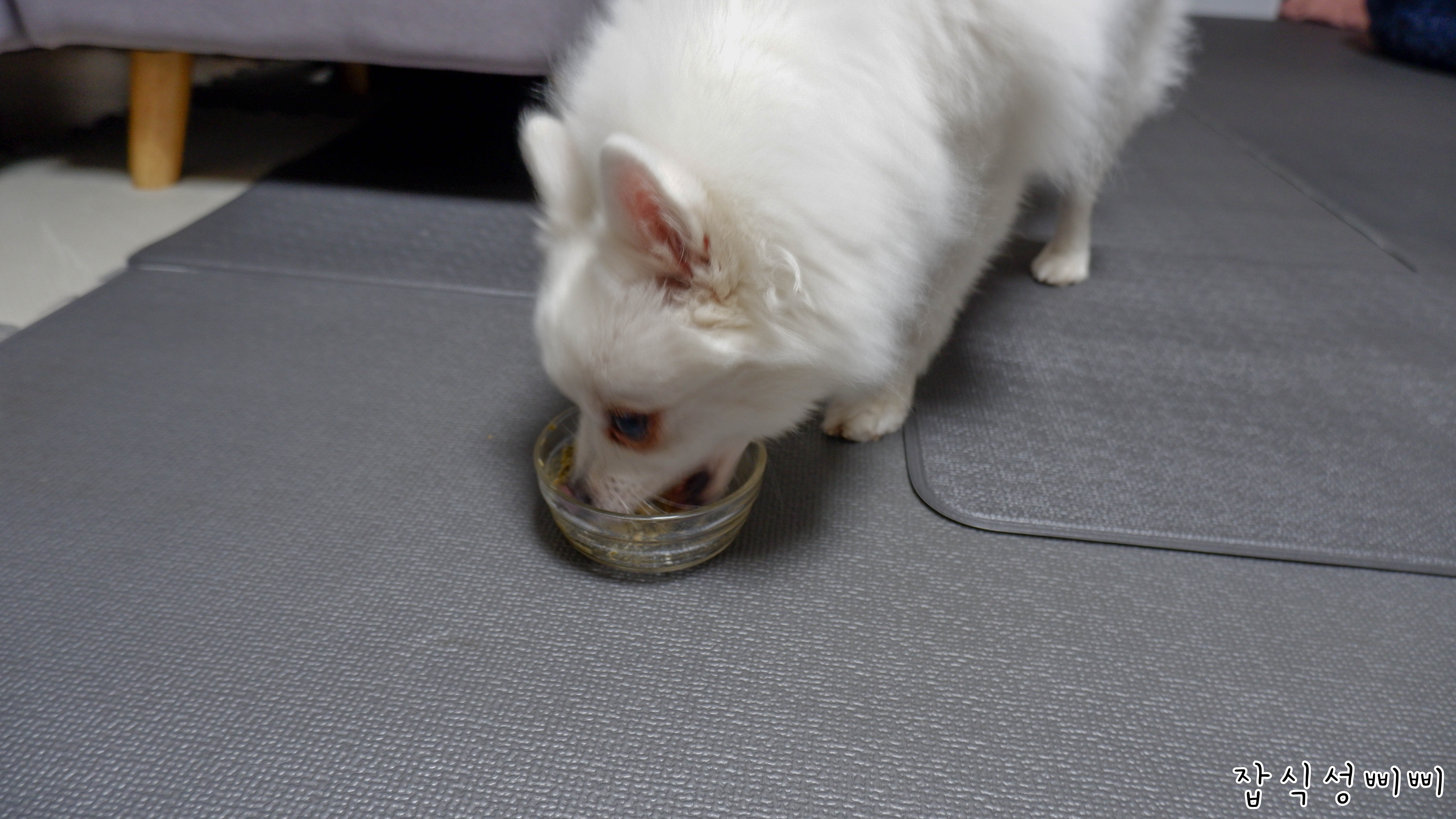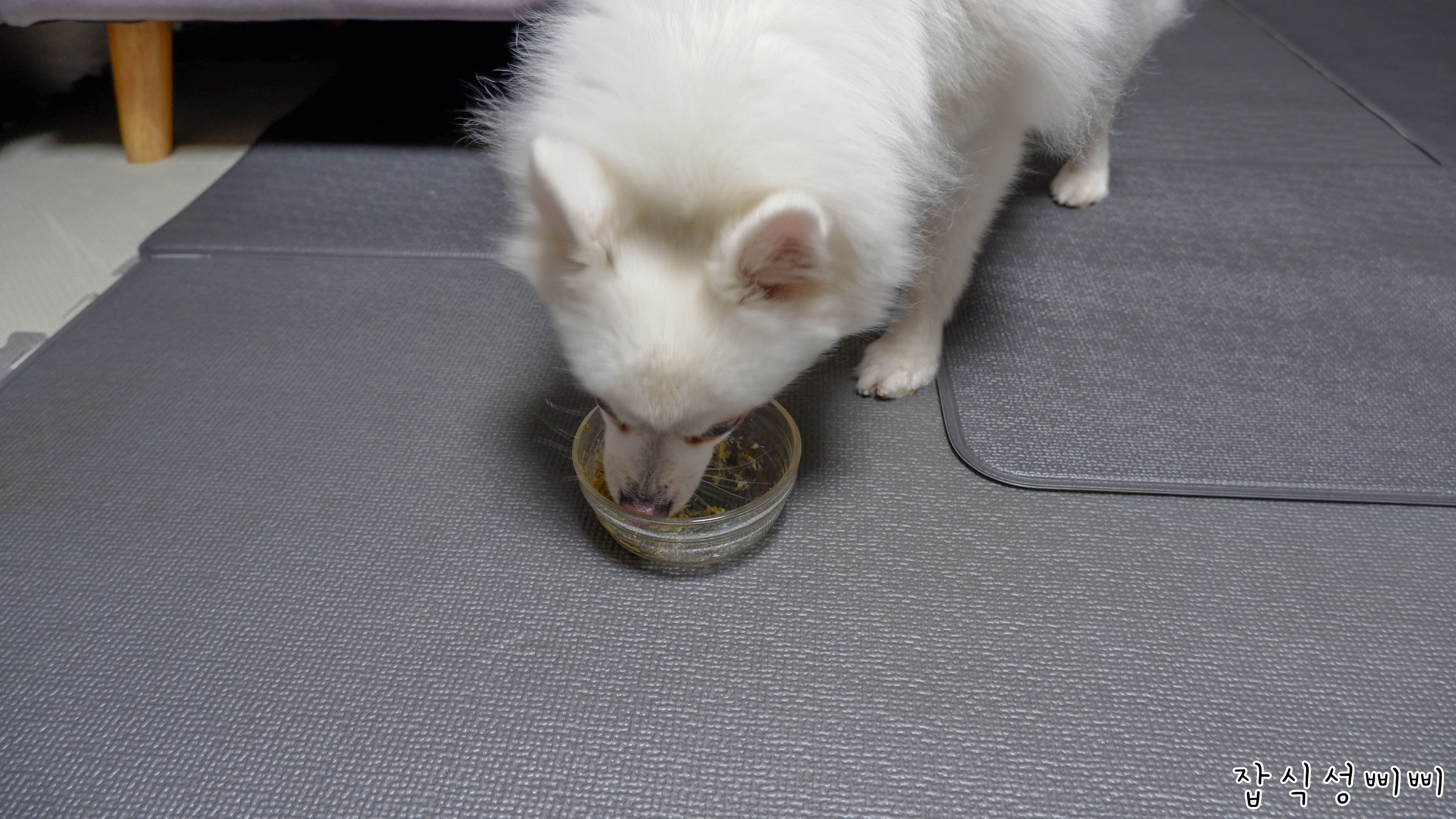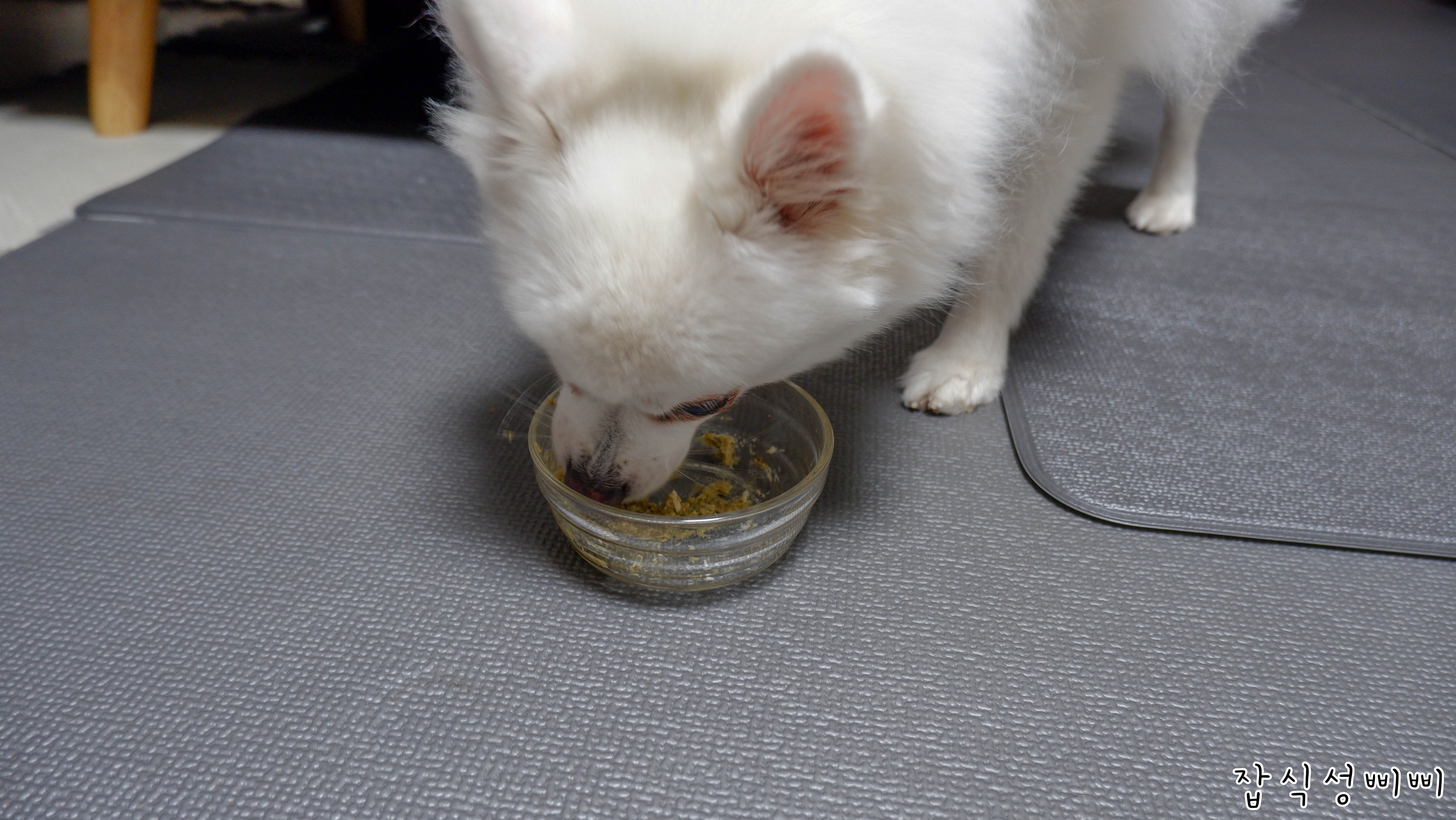 겨울이는 그릇 내려놓기가 무섭게 다 먹어버렸어요..ㅋㅋ 바닥에 떨어진 것 까지 싹싹 핥아먹네요.