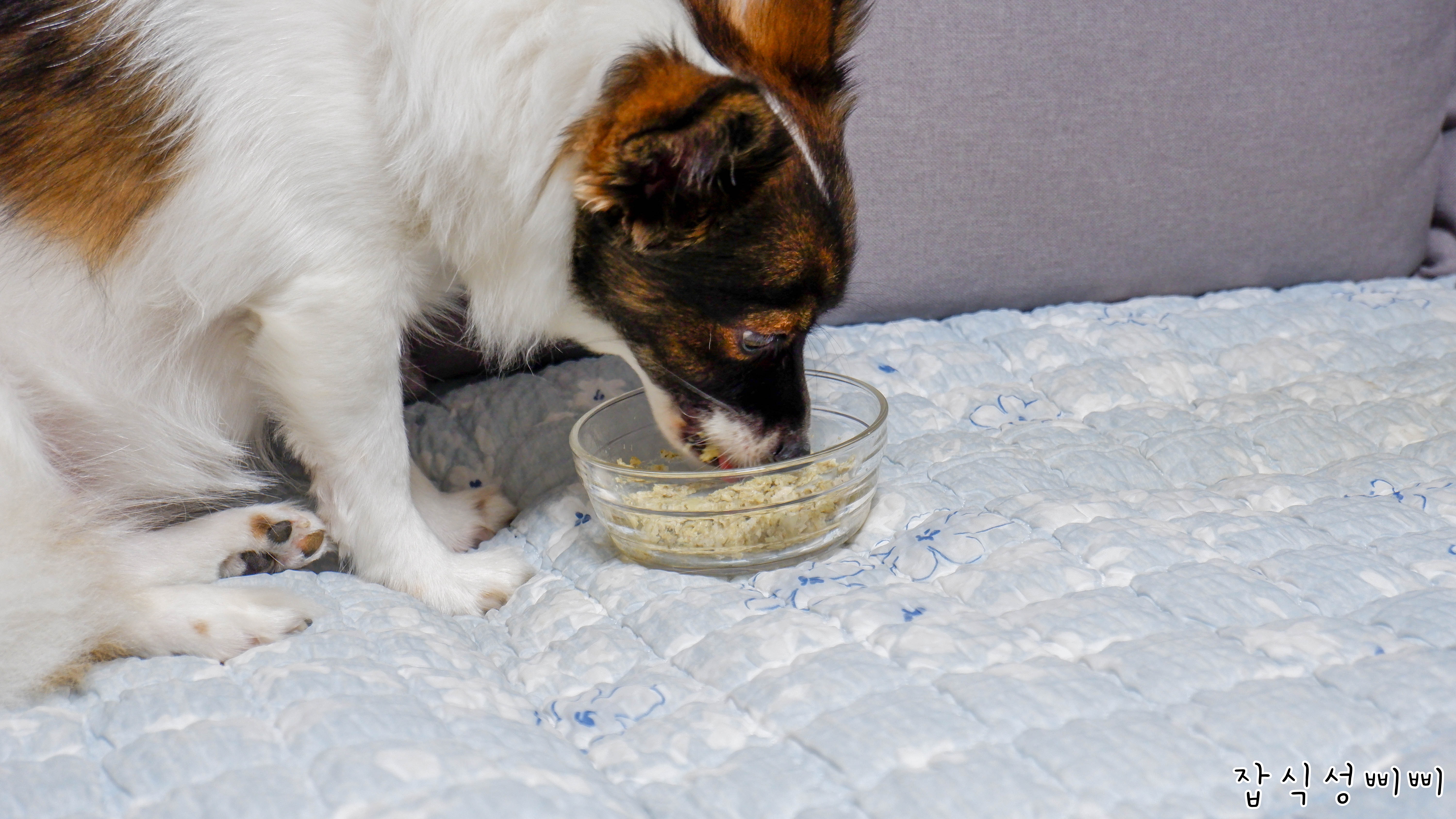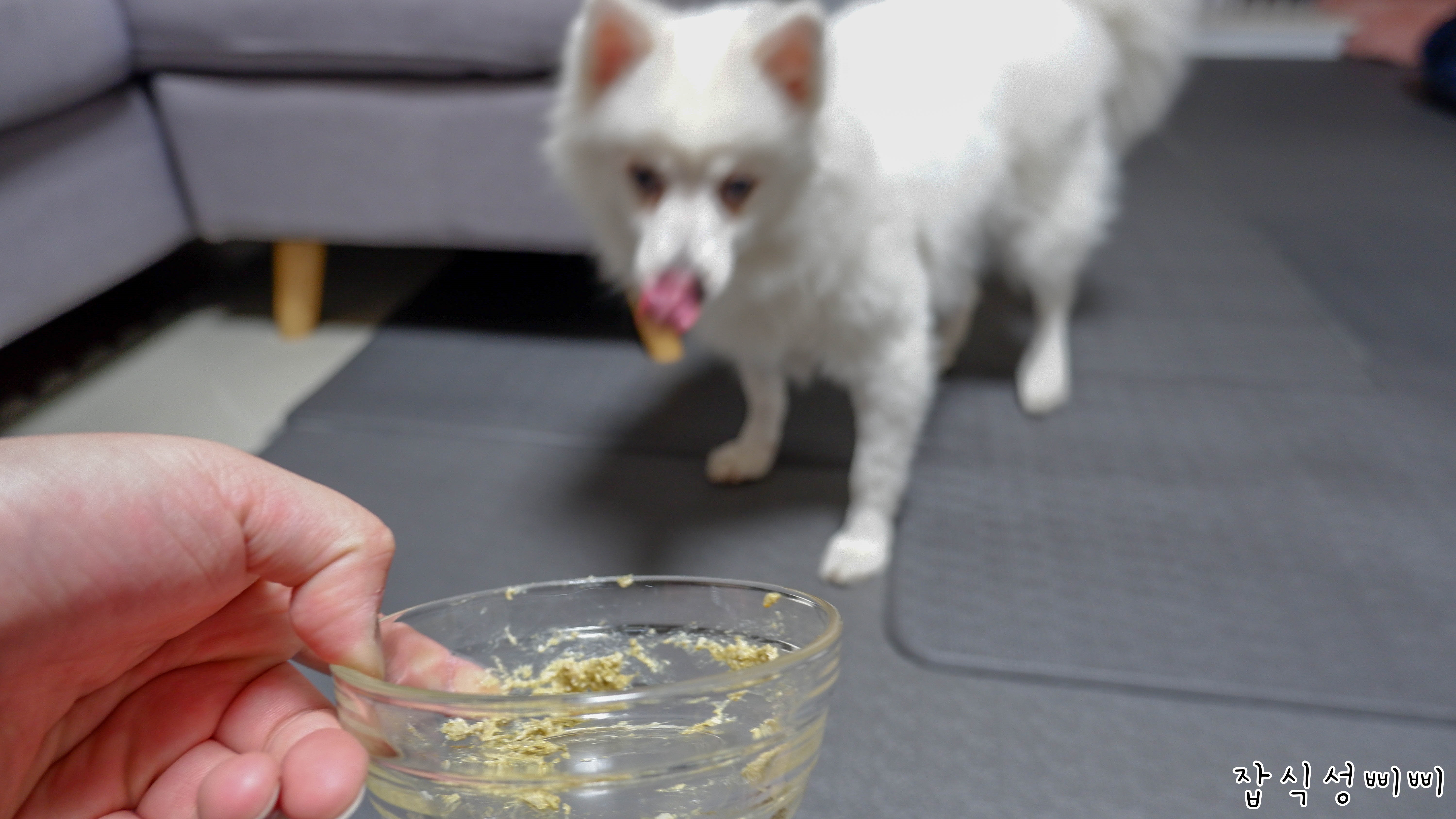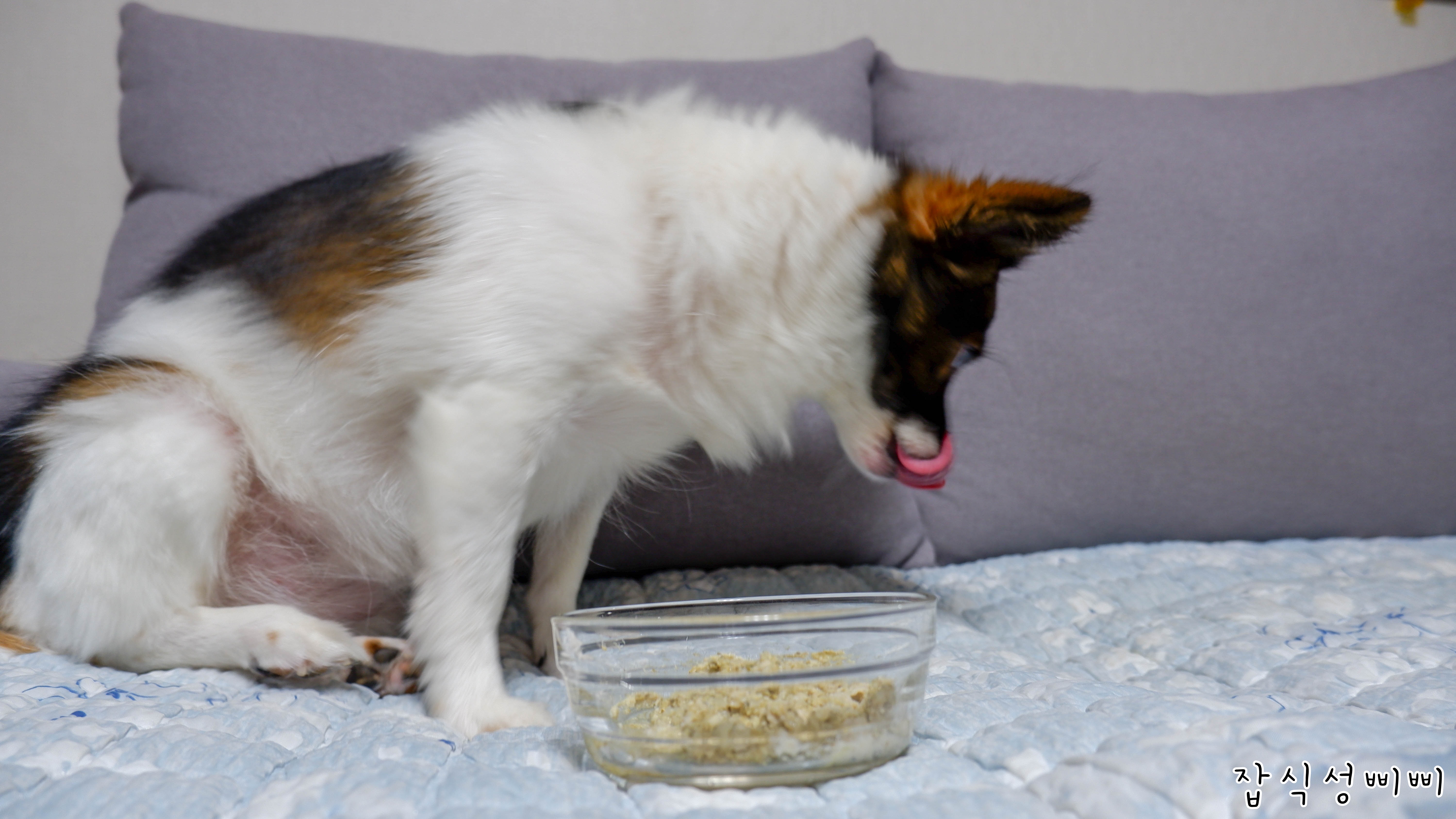 겨울이는 그릇 내려놓기가 무섭게 다 먹어버렸어요..ㅋㅋ 바닥에 떨어진 것 까지 싹싹 핥아먹네요.