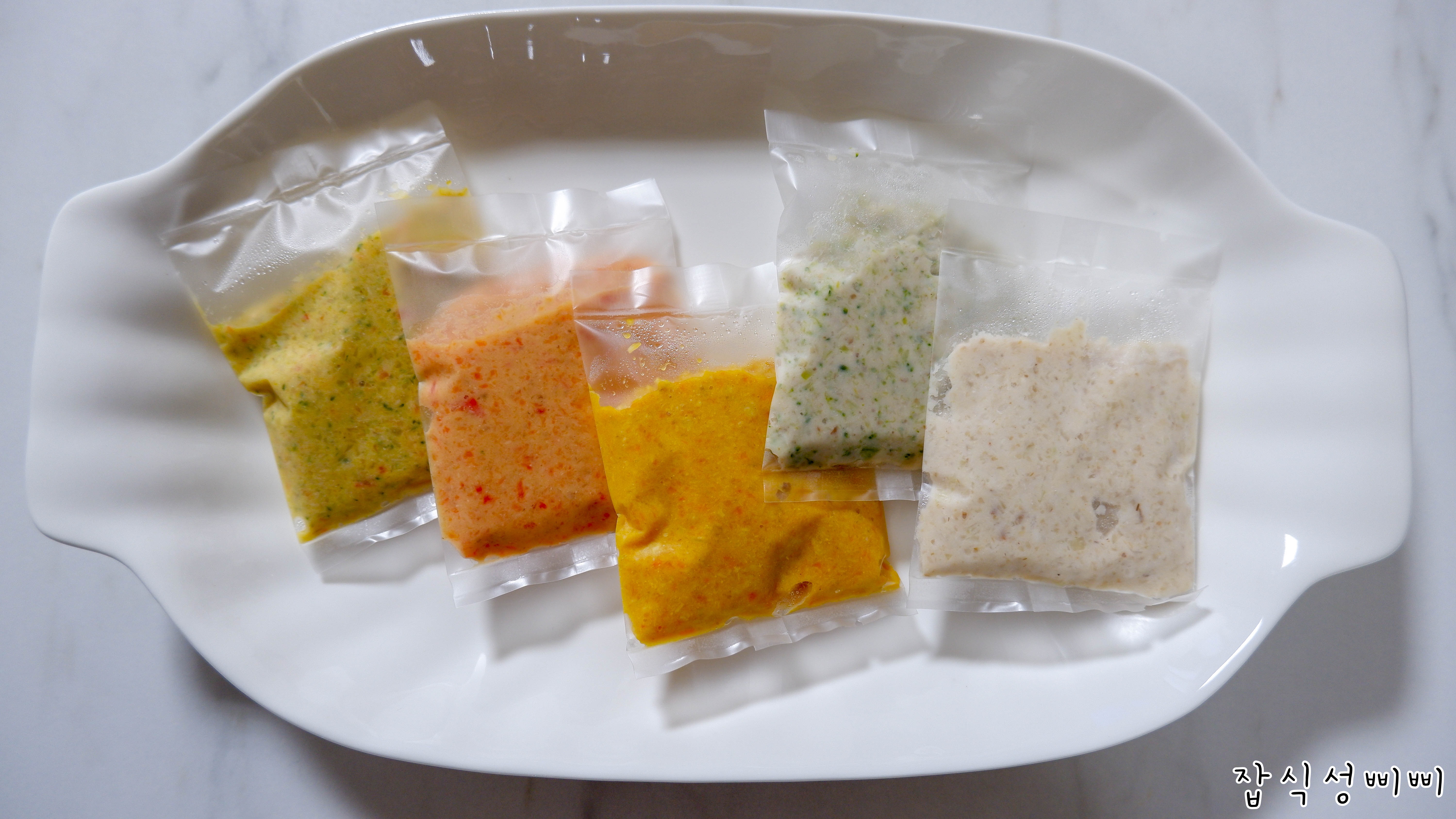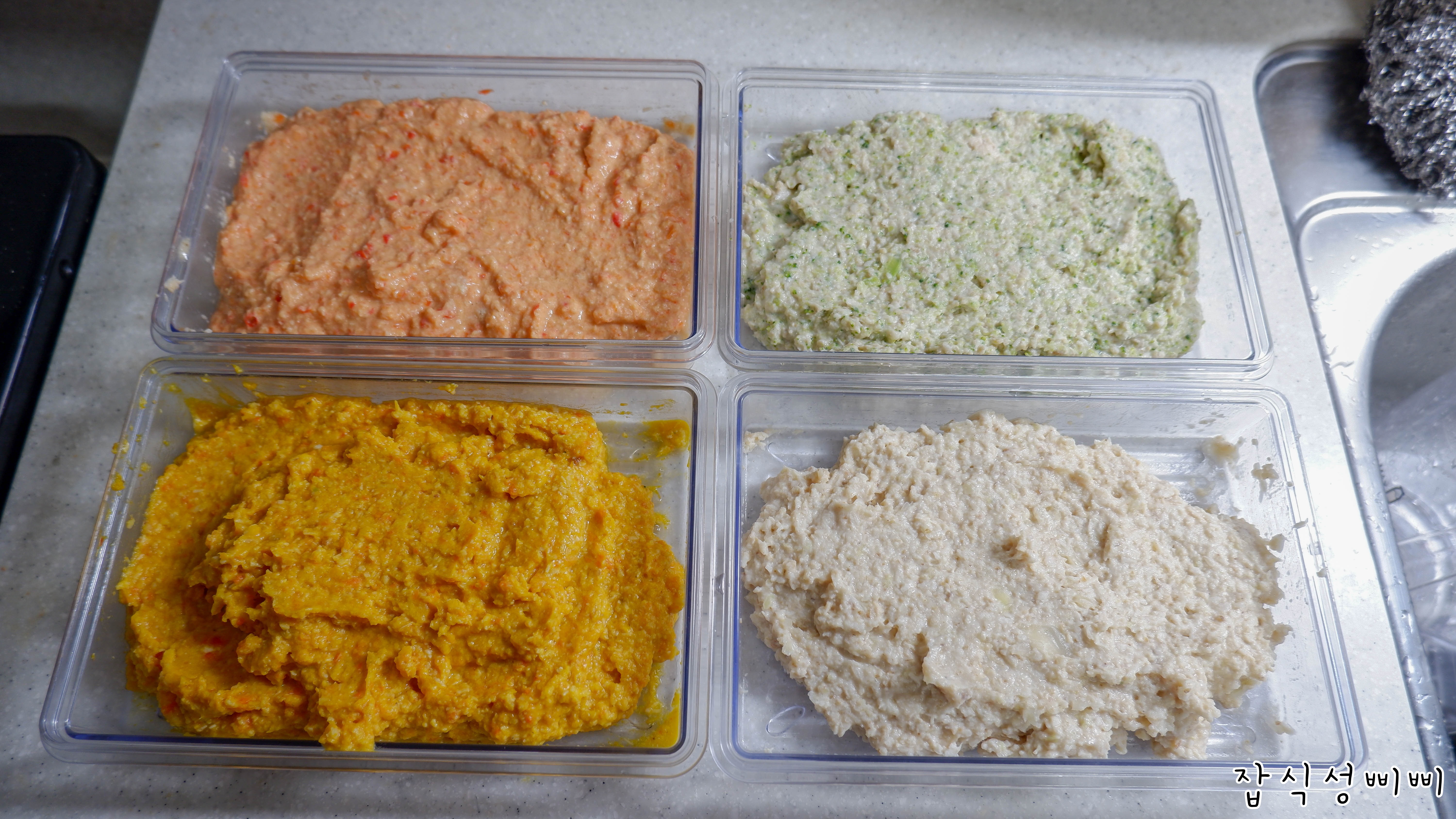 이건 모든 야채를 넣고 만든 믹스 퓨레에요. ㅎㅎ 이렇게 보니 정말 입자가 크네요 ㅠㅠ