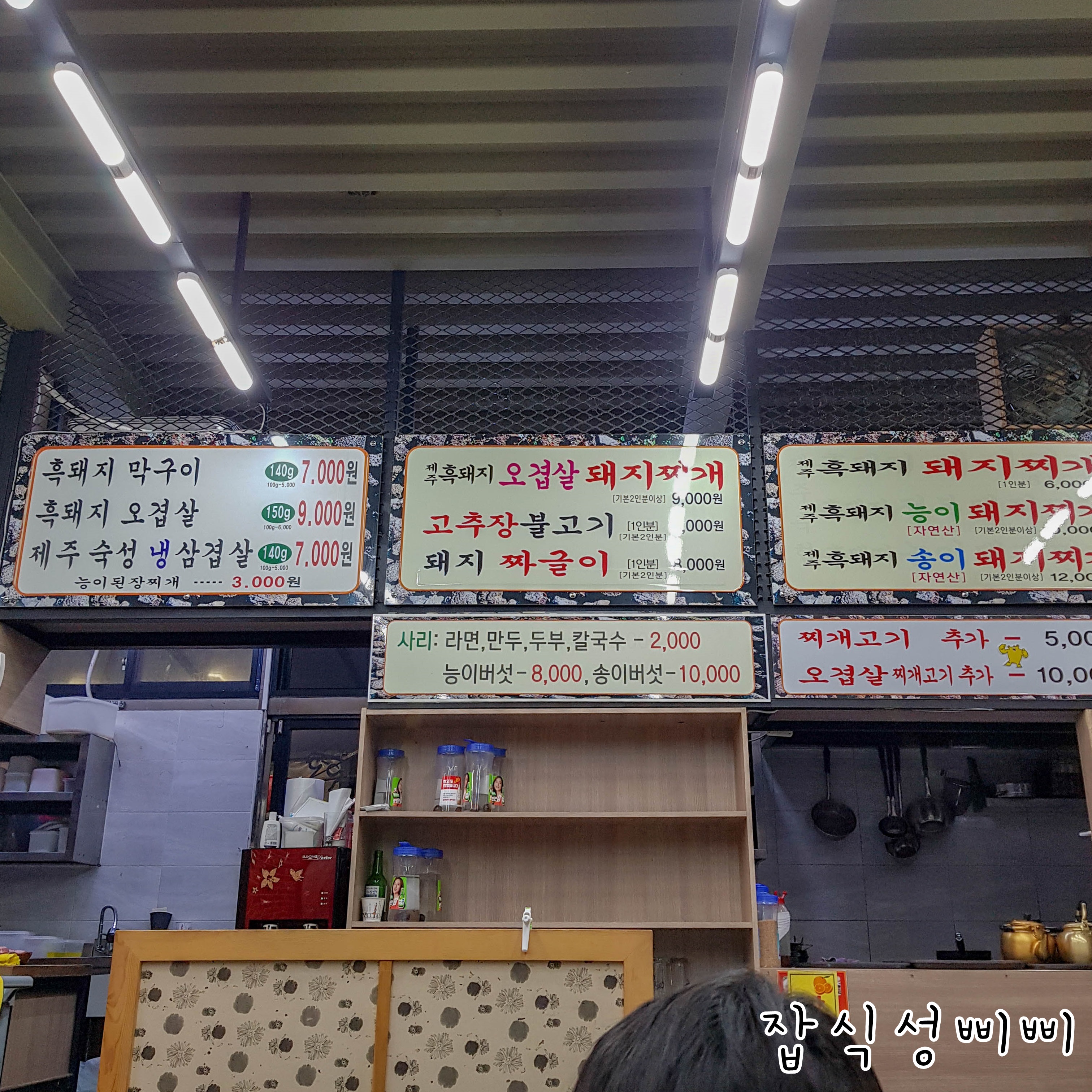 탐라돼지찌개 본점에서는 흑돼지를 이용한 식사류가 주를 이뤘는데요. 오겹살부터 오겹살돼지찌개, 짜글이 등 보이네요.