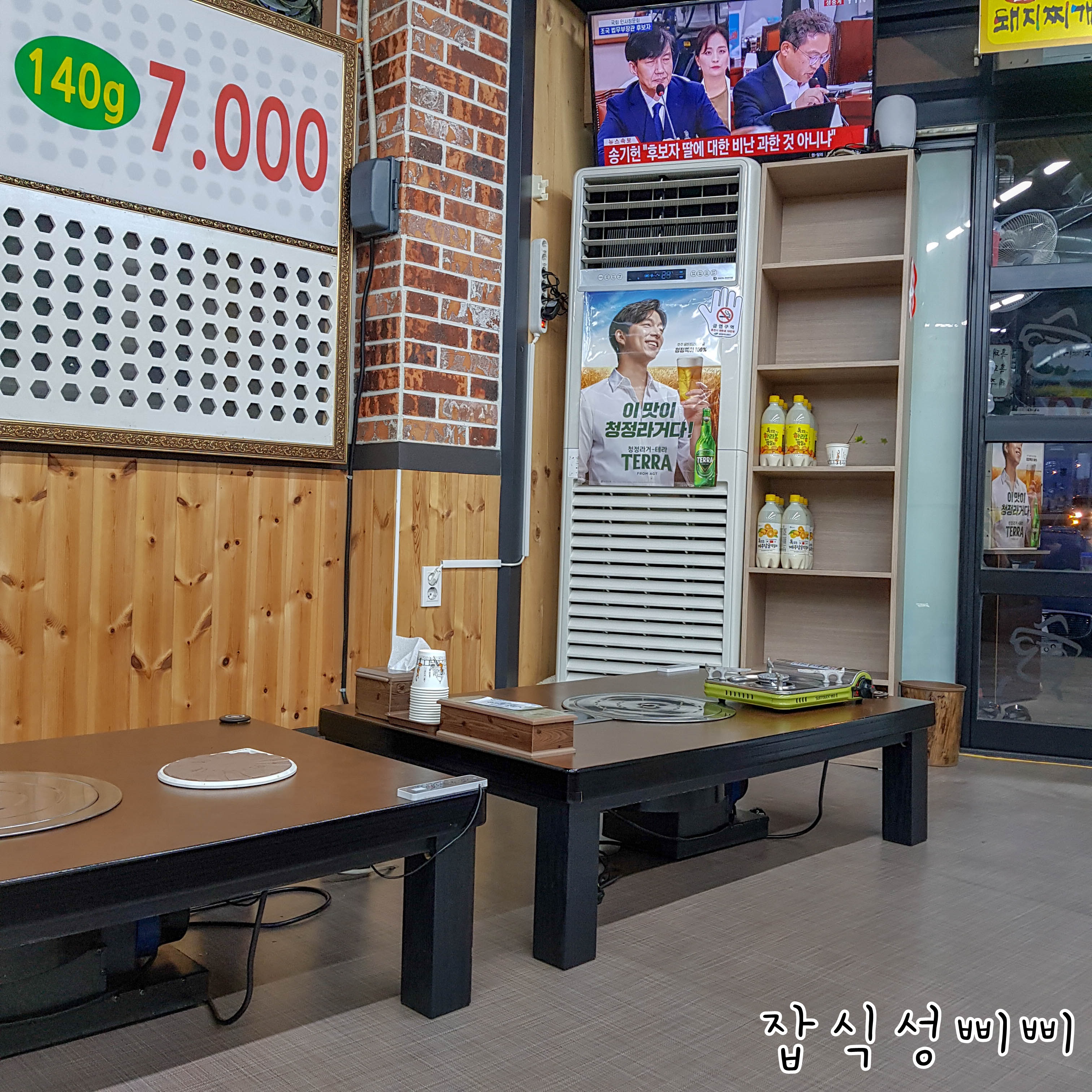 내부 테이블은 입식/좌식용 테이블이 나누어져있습니다. 삐삐는 신발을 벗고 이용하는 테이블을 사용했어요~