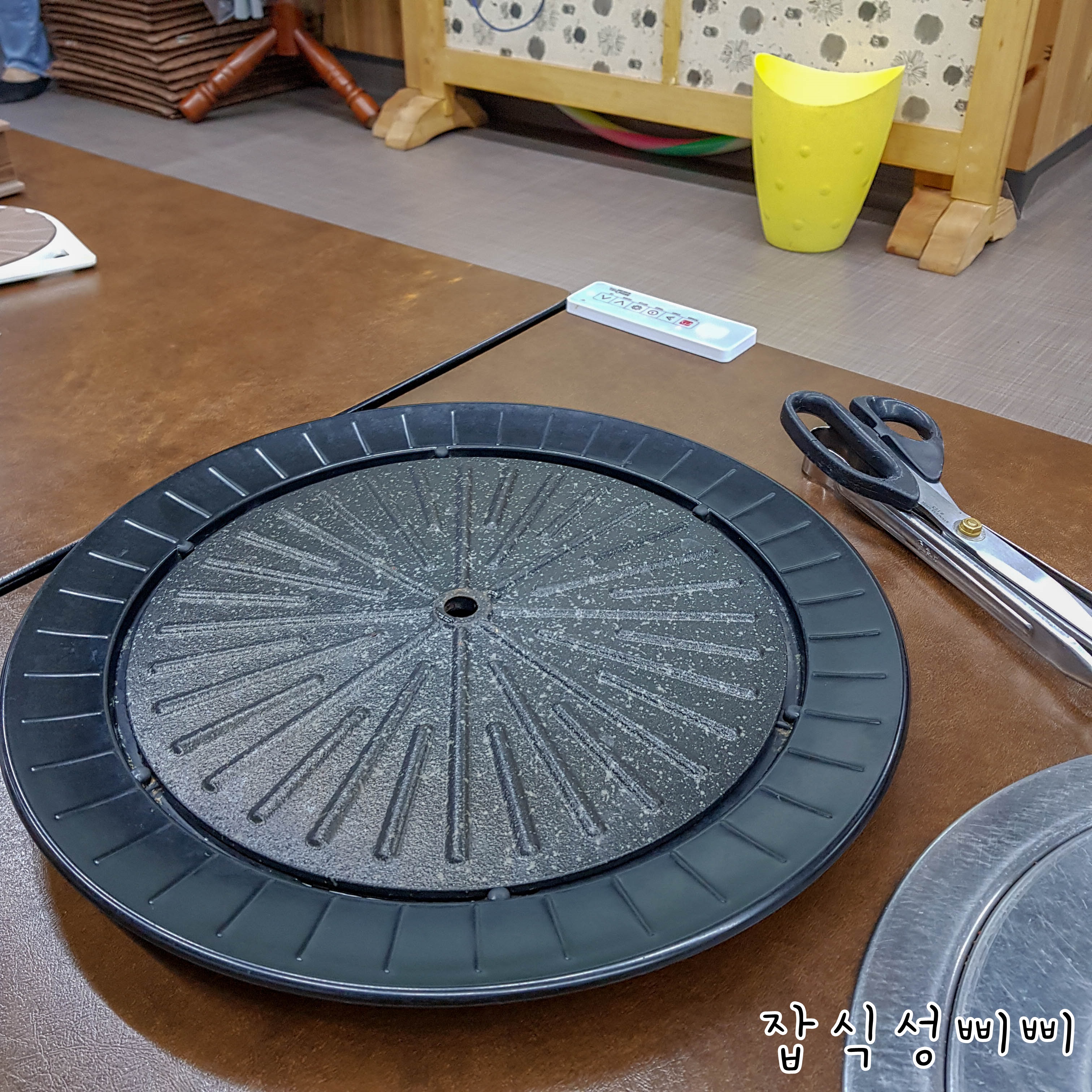 불판 아래에 인덕션 센서가 있어서 과열되지 않고 안전하게 고기를 구워먹을 수 있답니다.
