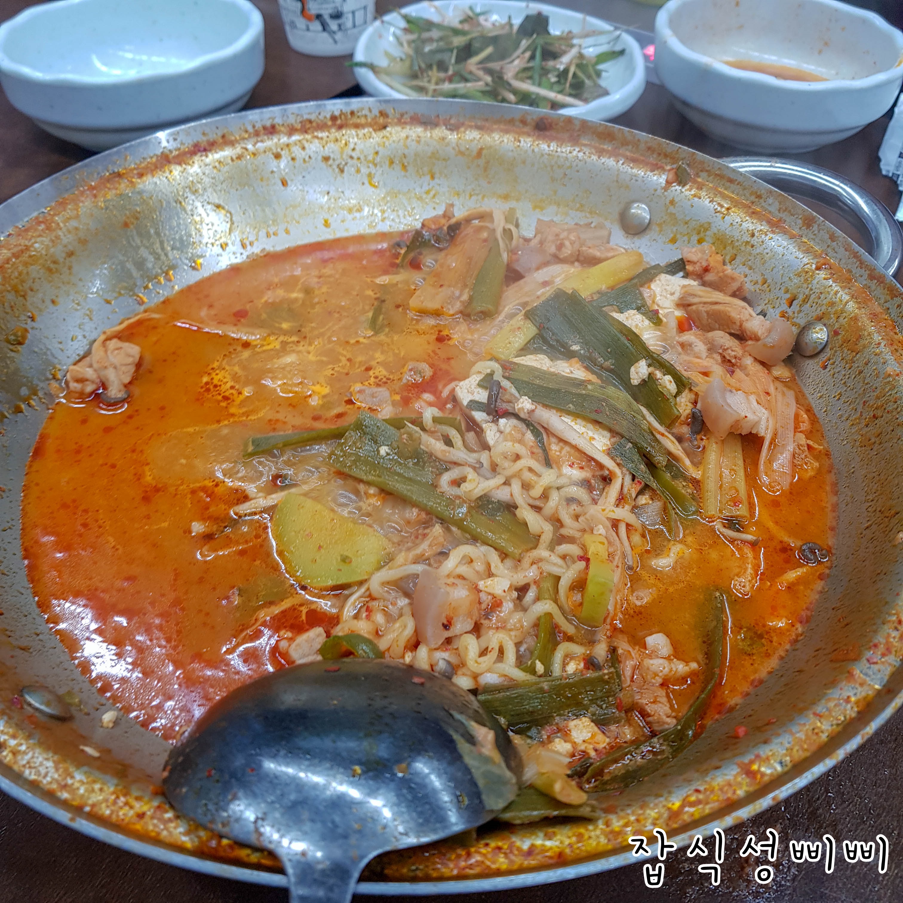 두부도 들어가고 당면도 들어있어서 생각보다 푸짐한 돼지찌개였어요~