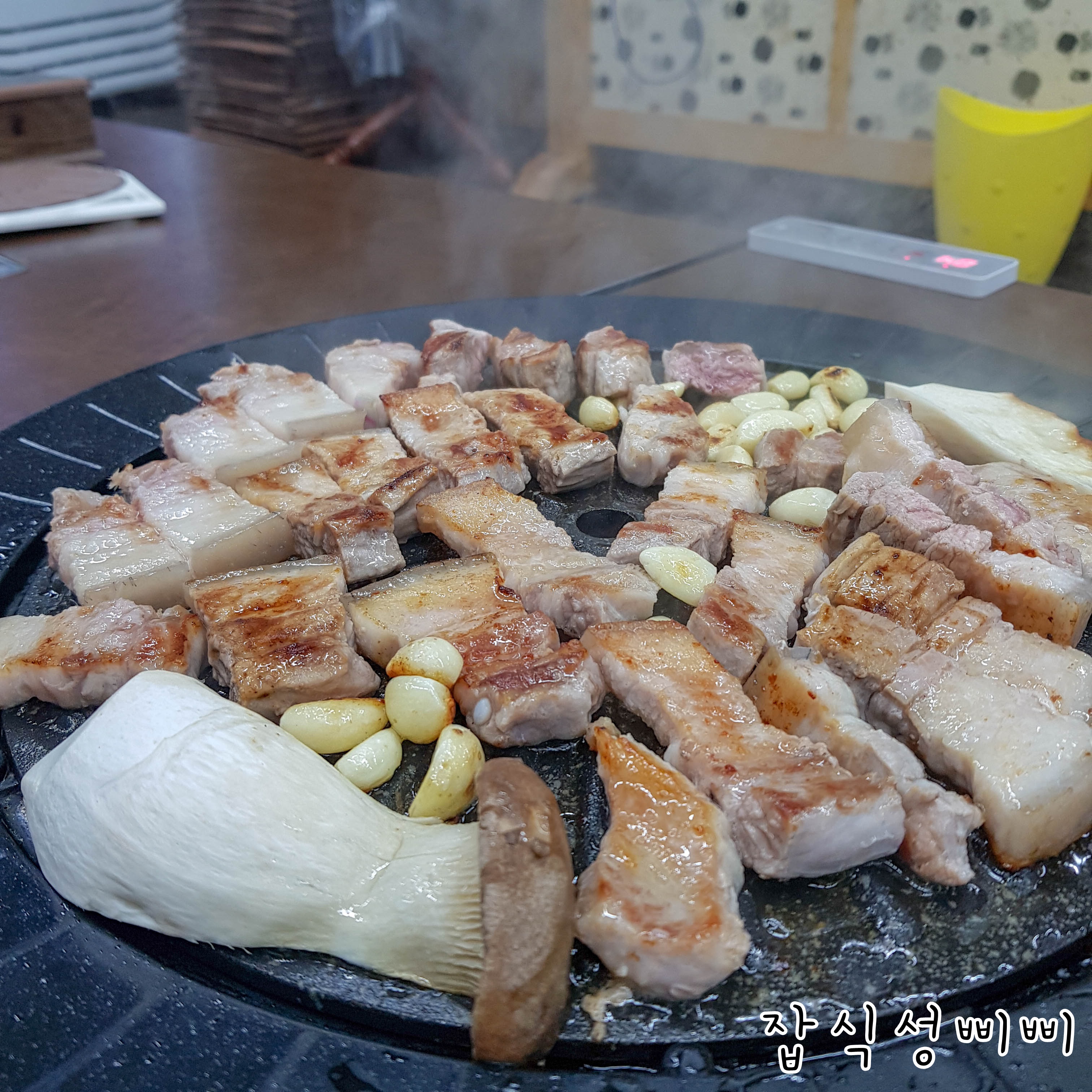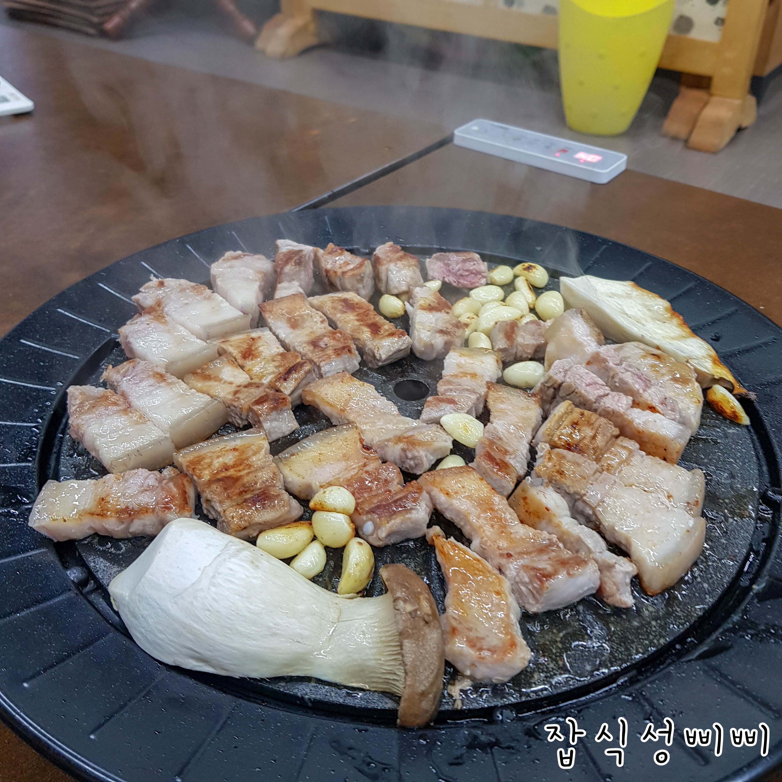 고기가 익는데 시간이 좀 오래 걸리더라구요. 그래도 불판이 센서를 이용한 방식이라 뜨거운 불이 없어서 다행이에요.