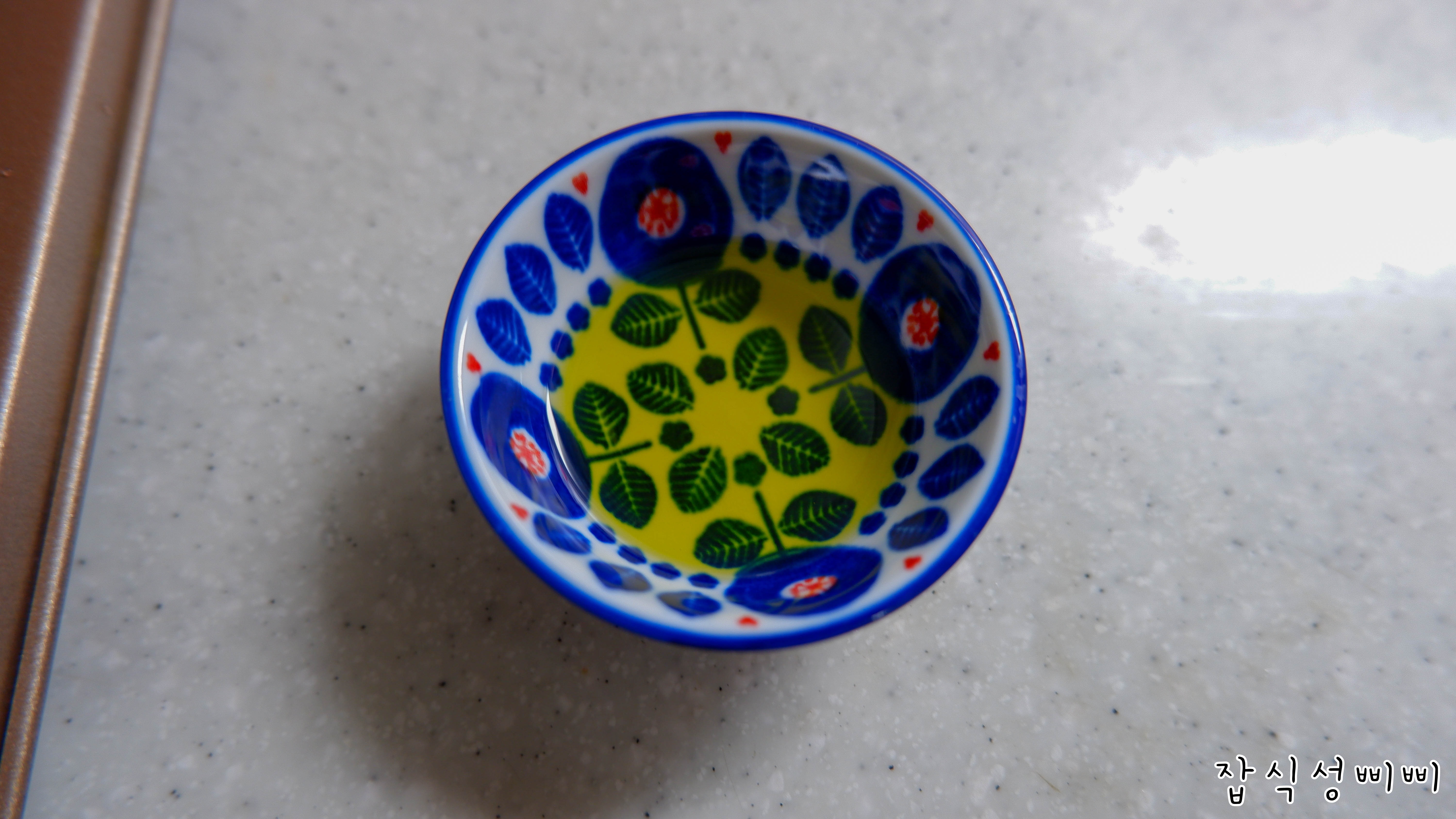 우선 빵 반죽만 넣어서 베이킹 할건데, 그냥 넣으면 빵이 혹여나 안떨어질 수도 있으니~ 올리브유를 살짝 발라줍니다.