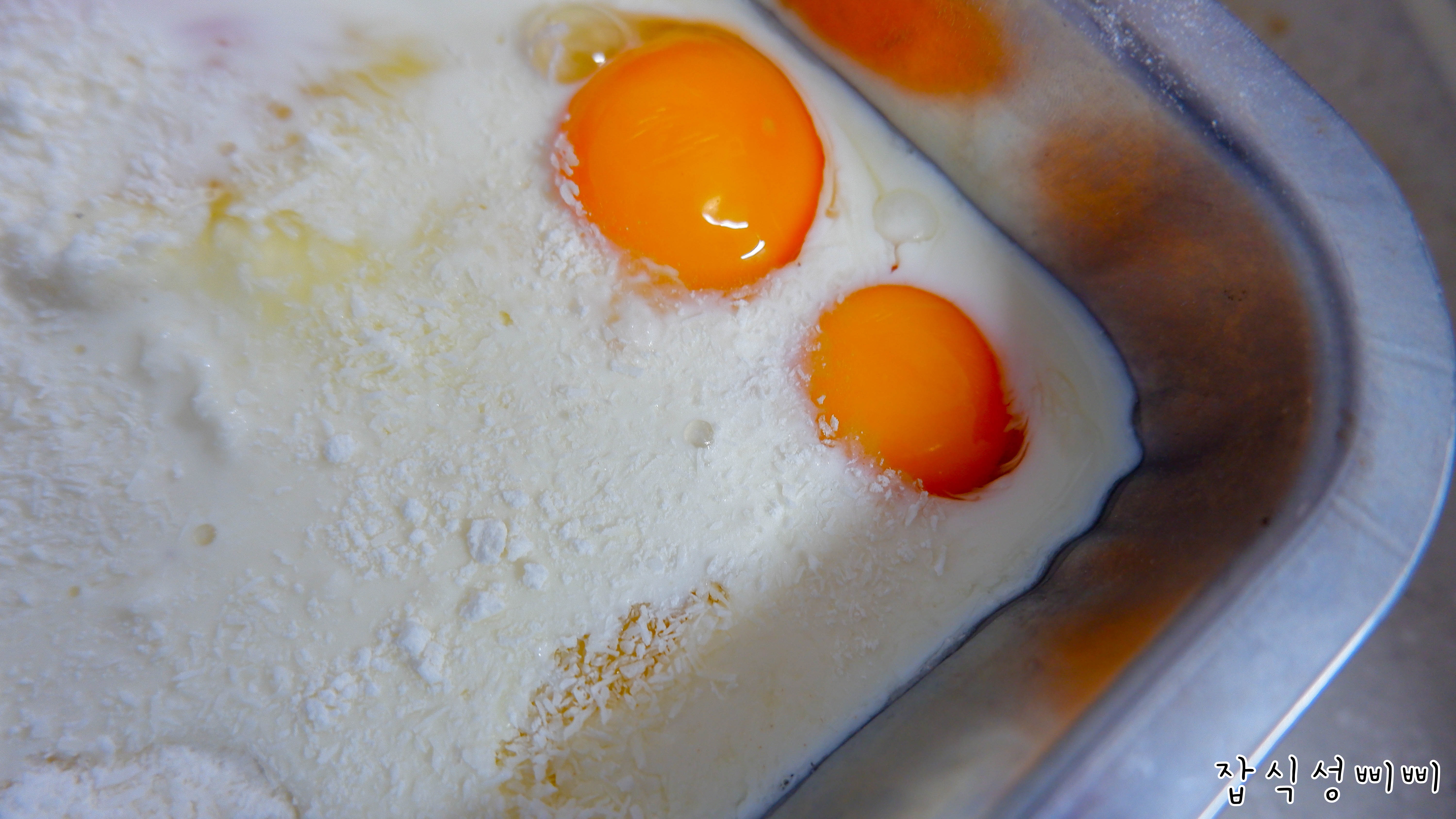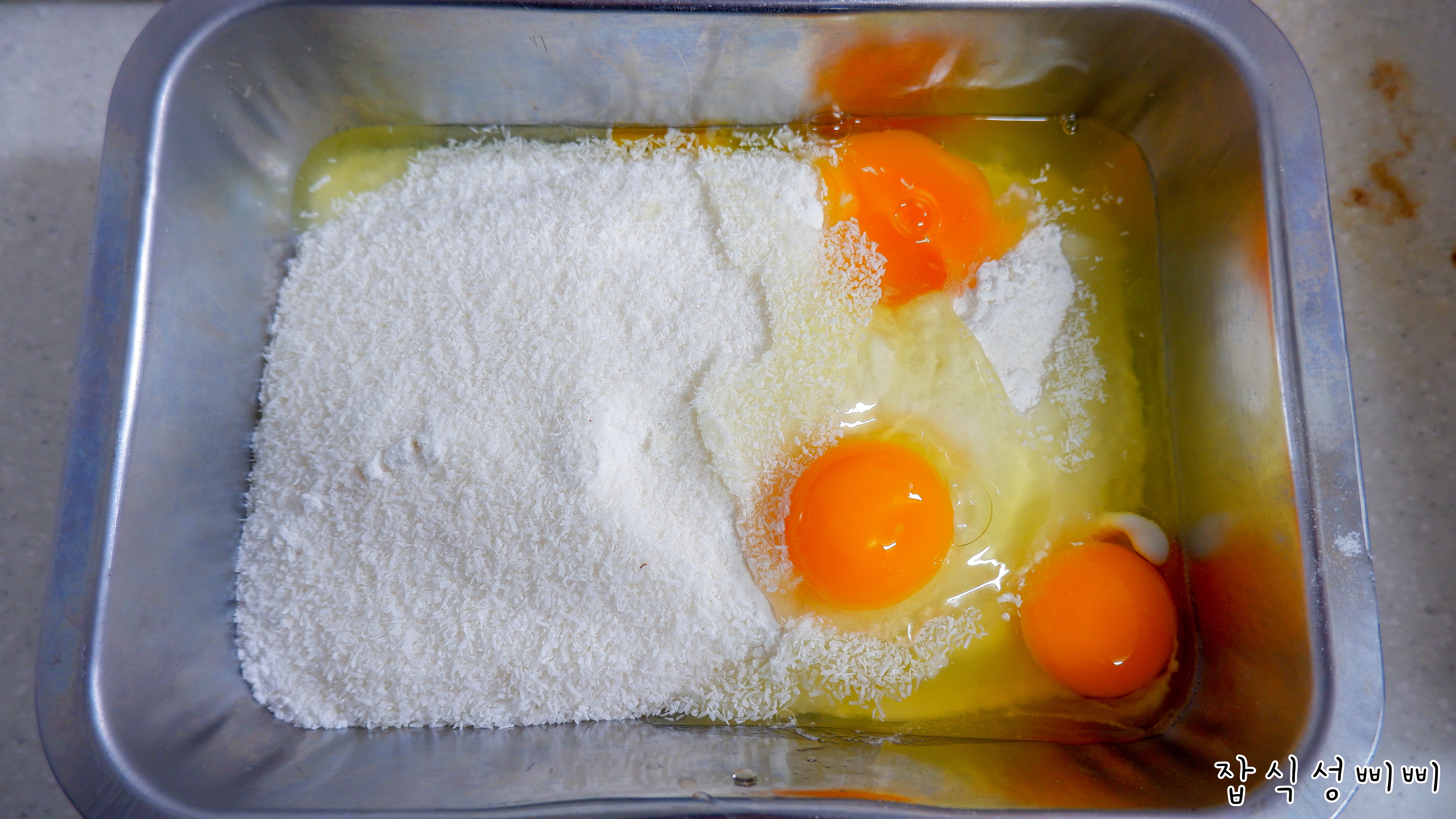 이전과 준비물은 동일합니다만, 계란을 조금 더 많이 사용했구요. 코코넛 분말 첨가하였습니다 :)