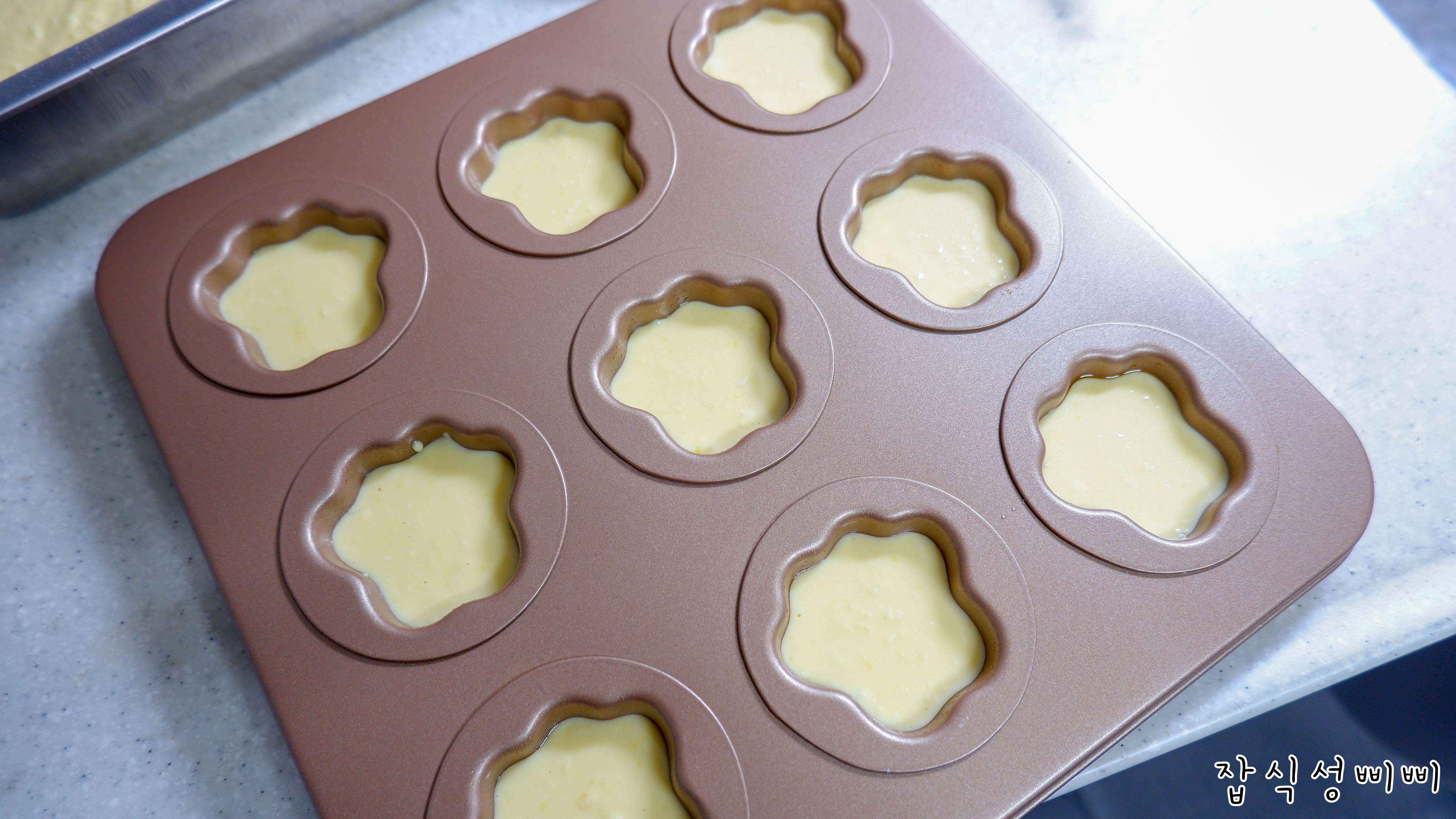 너무 뻑뻑하면 저는 이상하게 실패하더라구요..ㅋㅋㅋ 좀 묽어야 굽기도 편하고 나중에 식감도 더 좋은것 같아요..