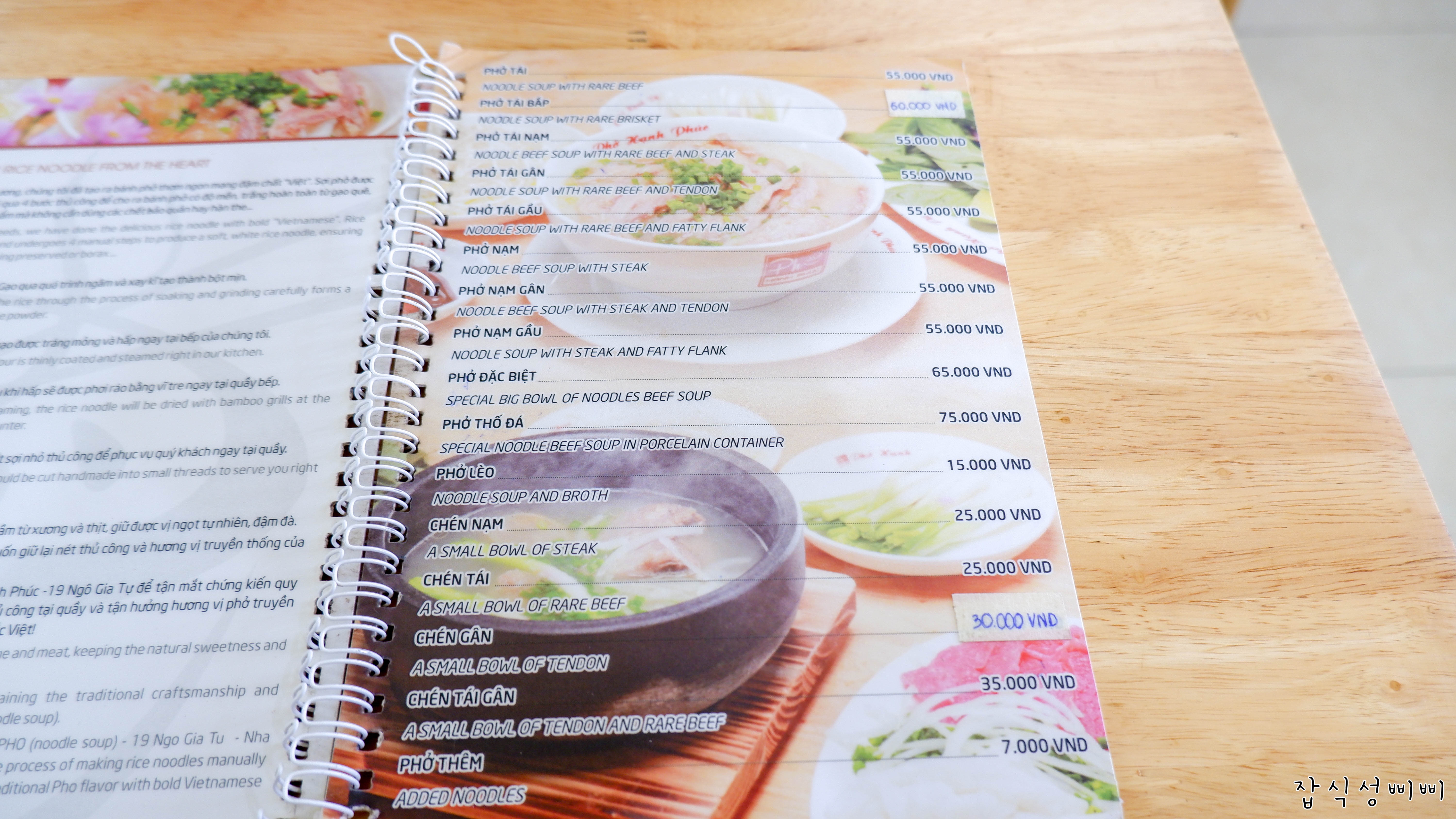 의미없는 메뉴판 사진이에요. 쌀국수 종류로만 준비되어 있었고 다른 사이드 메뉴는 없었어요.