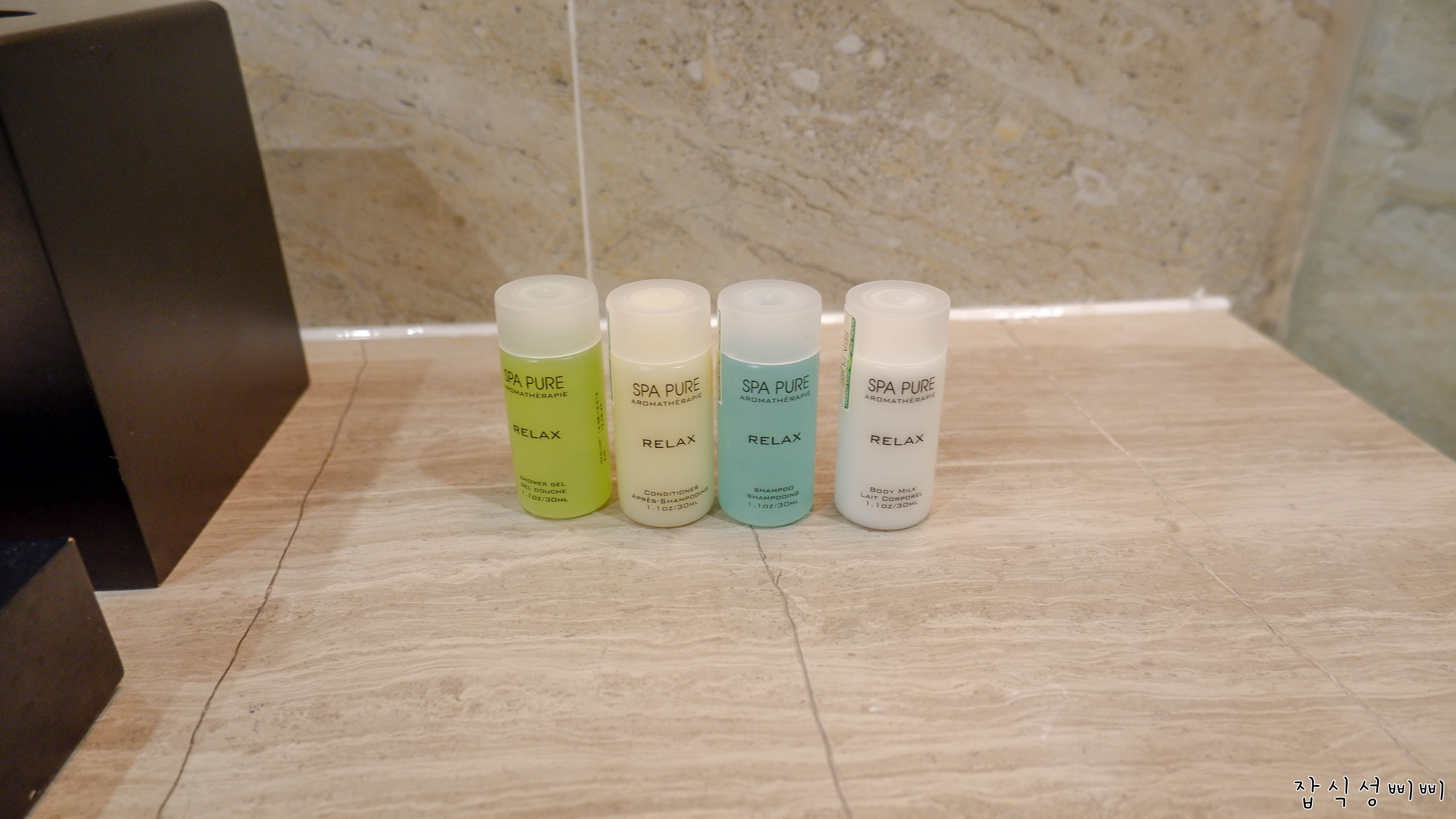 어메니티도 준비되어 있습니다. 스파 관련 브랜드인 것 같은데 향이나 사용에 거부감은 없었어요.