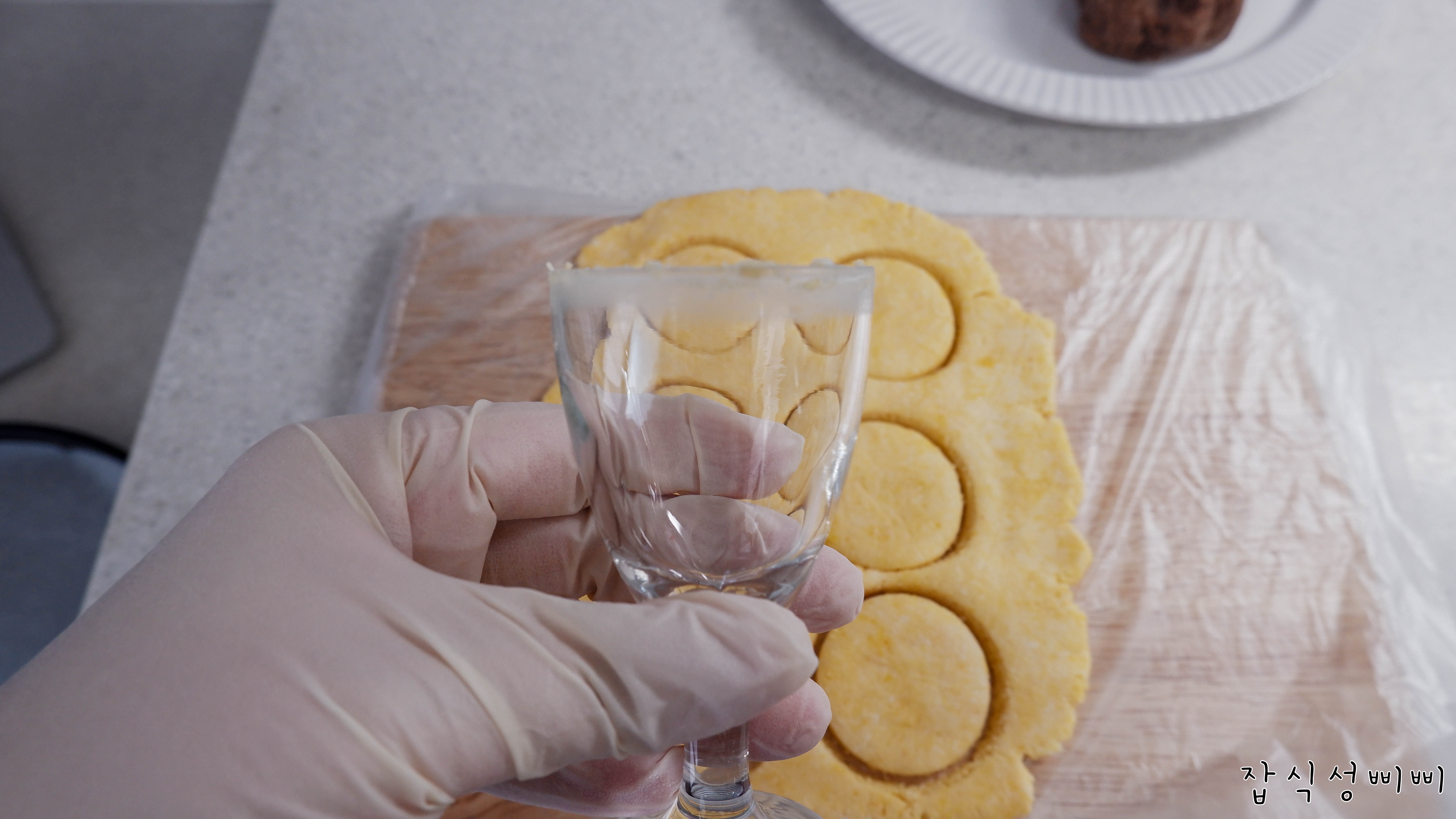 적당한 크기의 컵이나 그릇을 이용해 모양을 내주었어요! 삐삐는 소주잔이 크기가 딱일 것 같아서 사용했답니다.