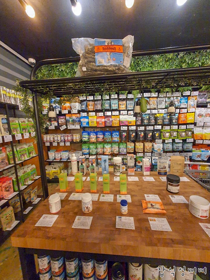 카페 한쪽에는 용품만 판매하는 코너가 따로 준비되어 있어요. 여기에는 샴푸, 사료, 간식, 빗 등 애견용품이 준비되어 있는데요. 가격도 인터넷 최저가랑 비교했을 때 쪼금 더 높은정도? 배송비 포함하면 여기서 구입하는게 더 저렴할지두요.