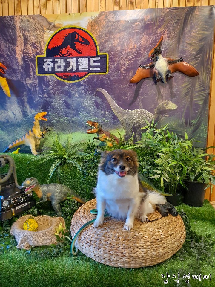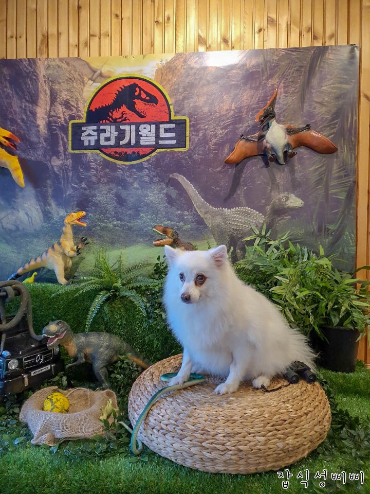 이번 포토존 컨셉은 쥬라기월드! ㅎㅎ 초롱이가 덜덜 떨어서 겁에 질린 표정.. 그래도 사진 한장 남겨보겠다며..