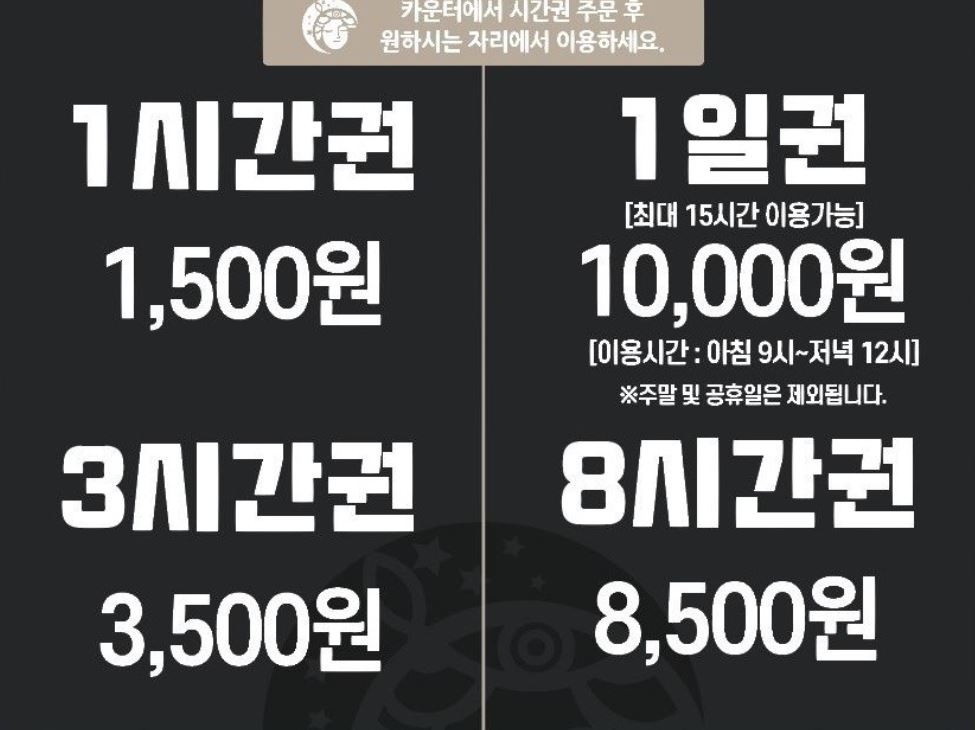 그래서 3시간권이 저렴하니 3시간권으로 이용했어요. 음료는 포함되지 않은 금액입니다!