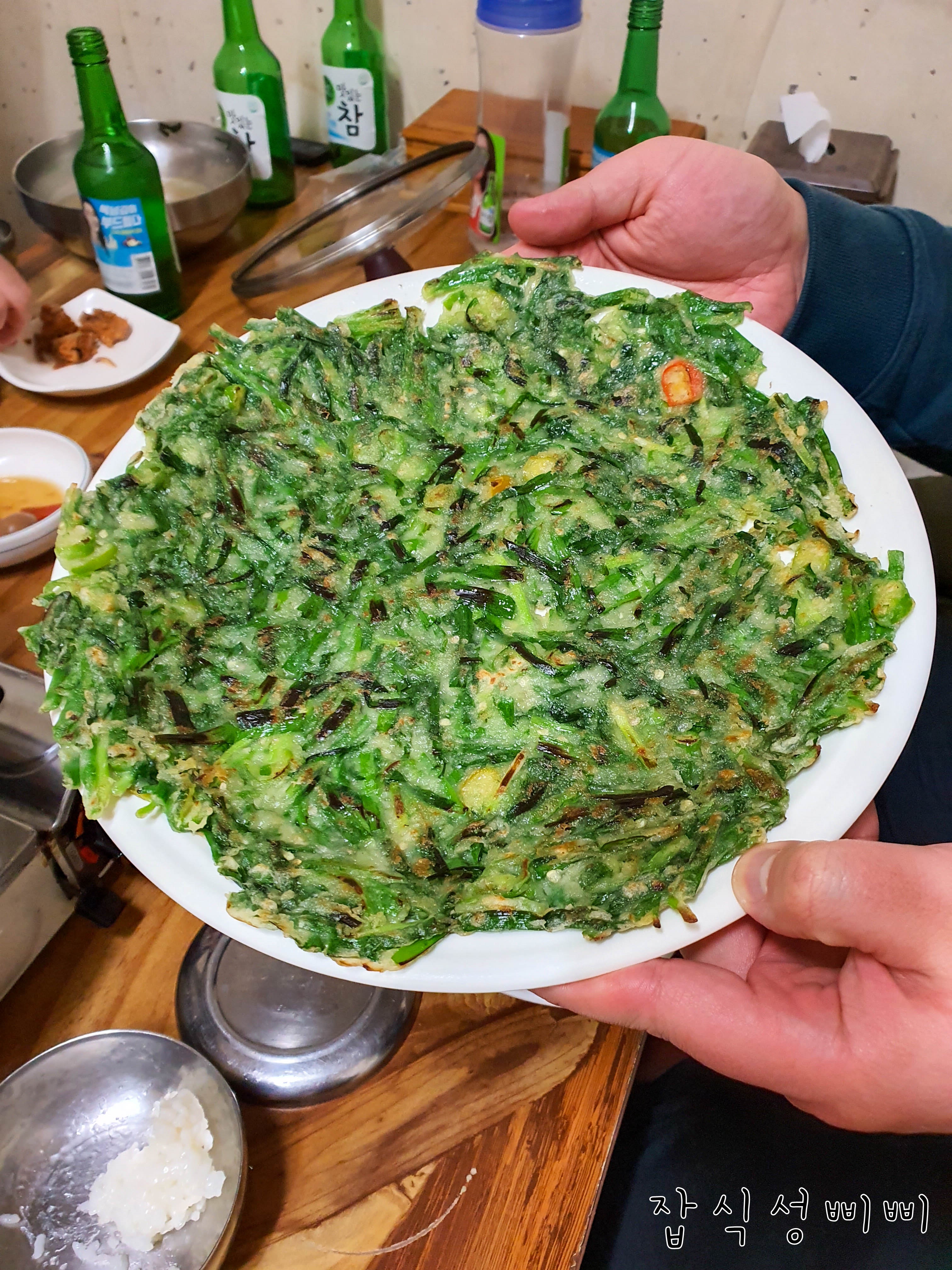 연휴 전날 손님이 우리 테이블 밖에 없어서 그런지~ 땡초부추전을 서비스로 주셨어욤^ㅡ^