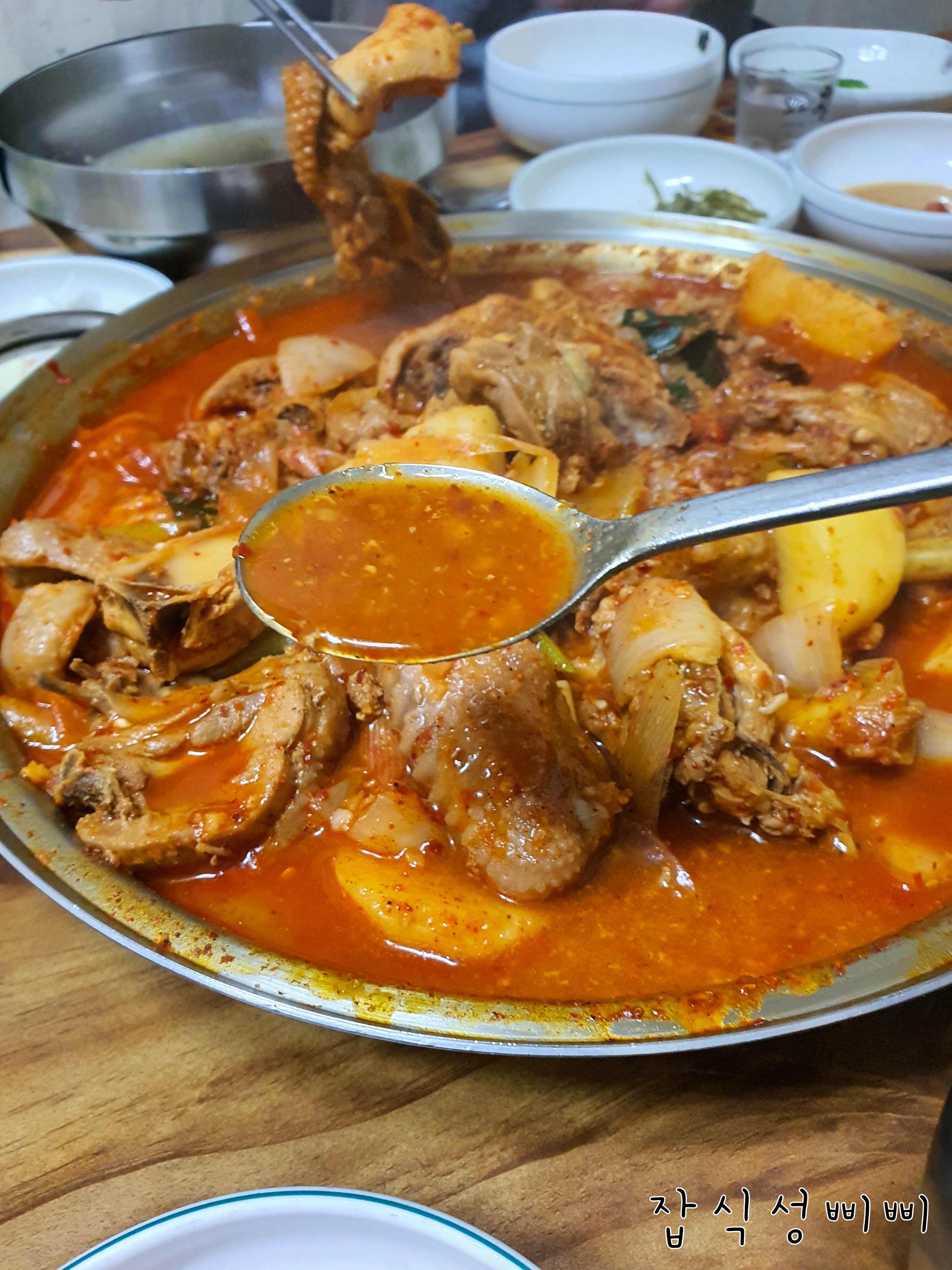 닭매운탕은 처음이라 조금 겁냈는데~ 닭도리탕에 국물만 넉넉한 느낌? ㅎㅎ