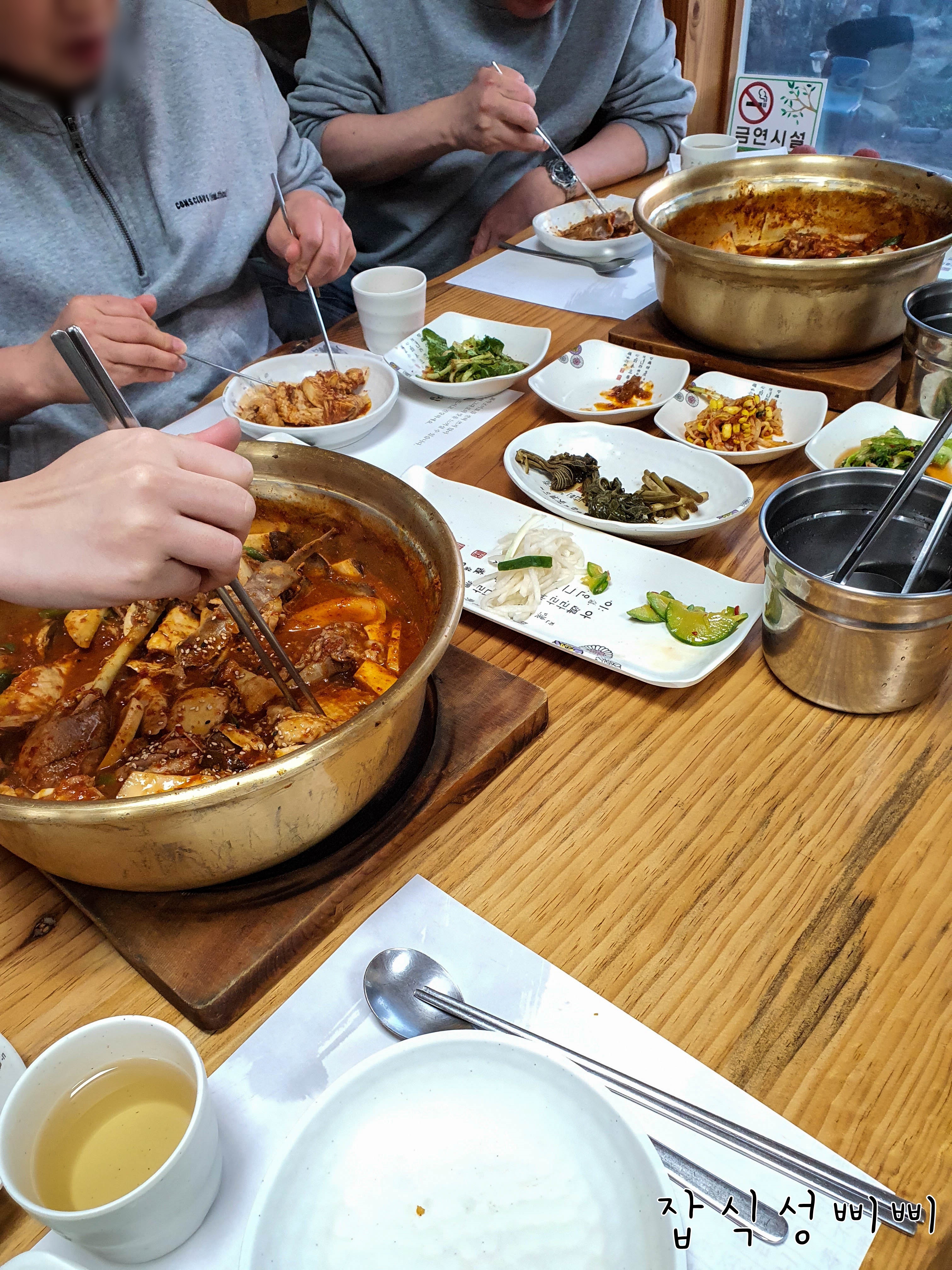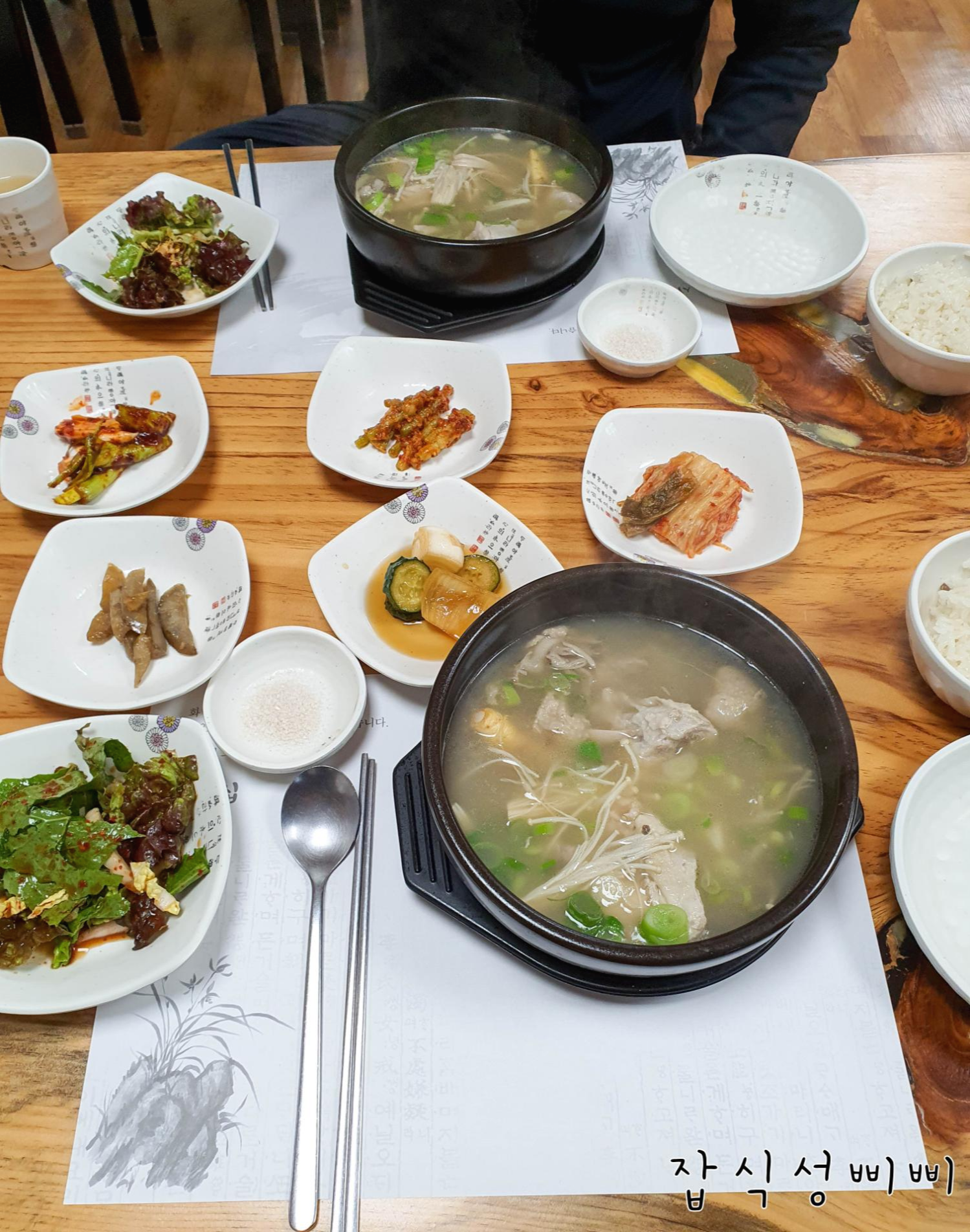 5명이라 한마리 반 한 것 같아요. 아마 대자일겁니다 ㅋㅋ 점심때 맛 볼 수 있는 한정식과 닭곰탕도 별미라네요!!