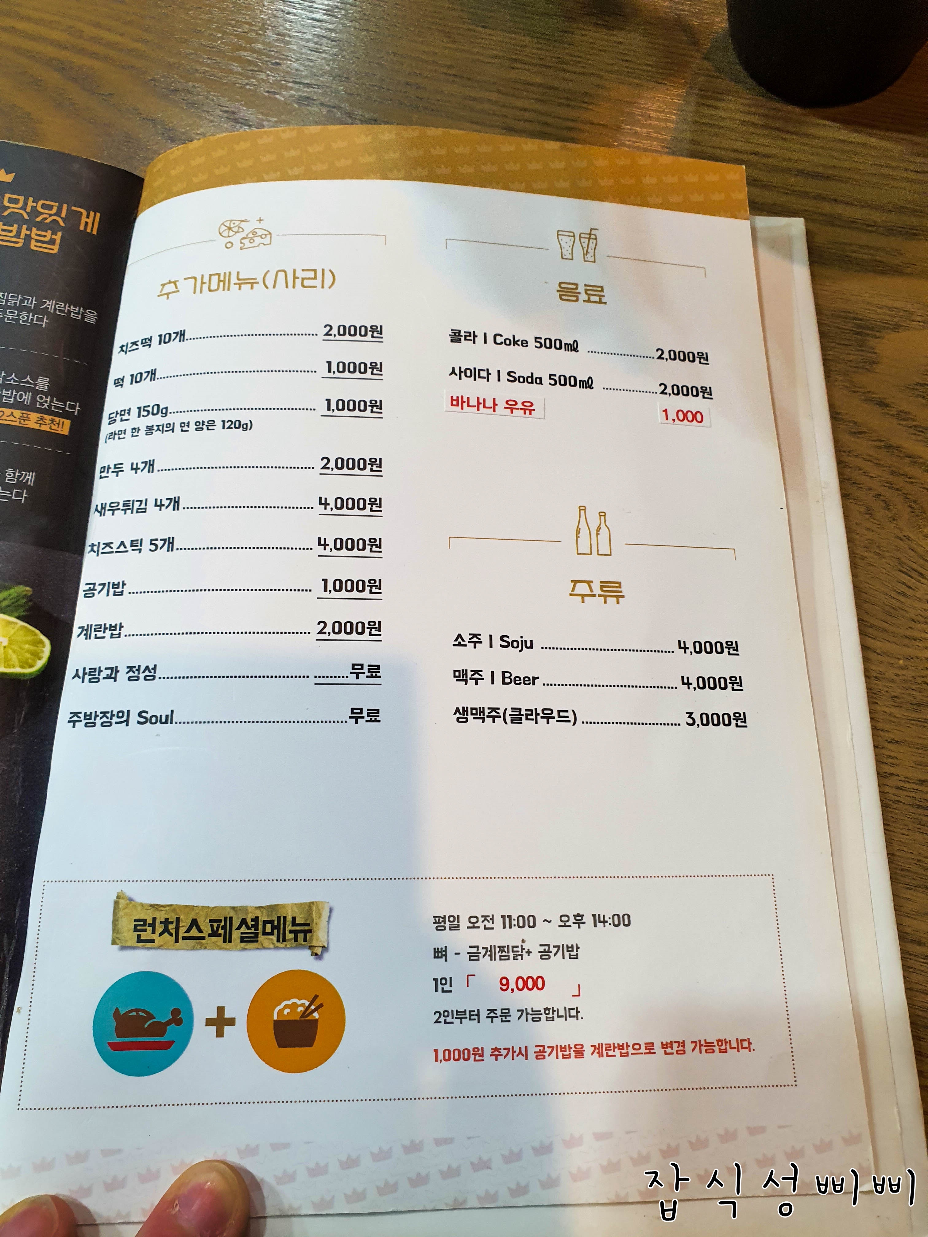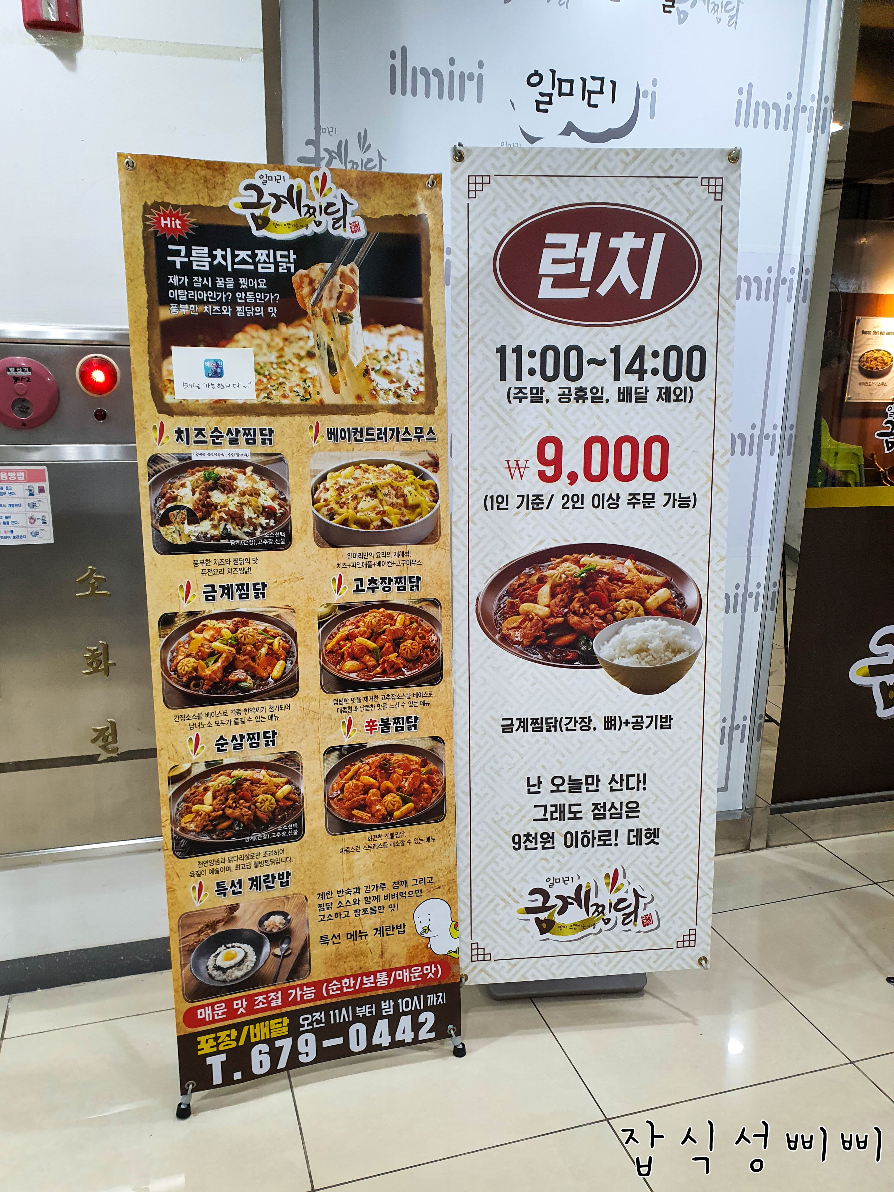 포장, 배달도 가능하네요! 런치메뉴는 1인에 9,000원이라니! 두 명이서 18,000원에 찜닭 먹을 수 있어요 ㅎㅎ