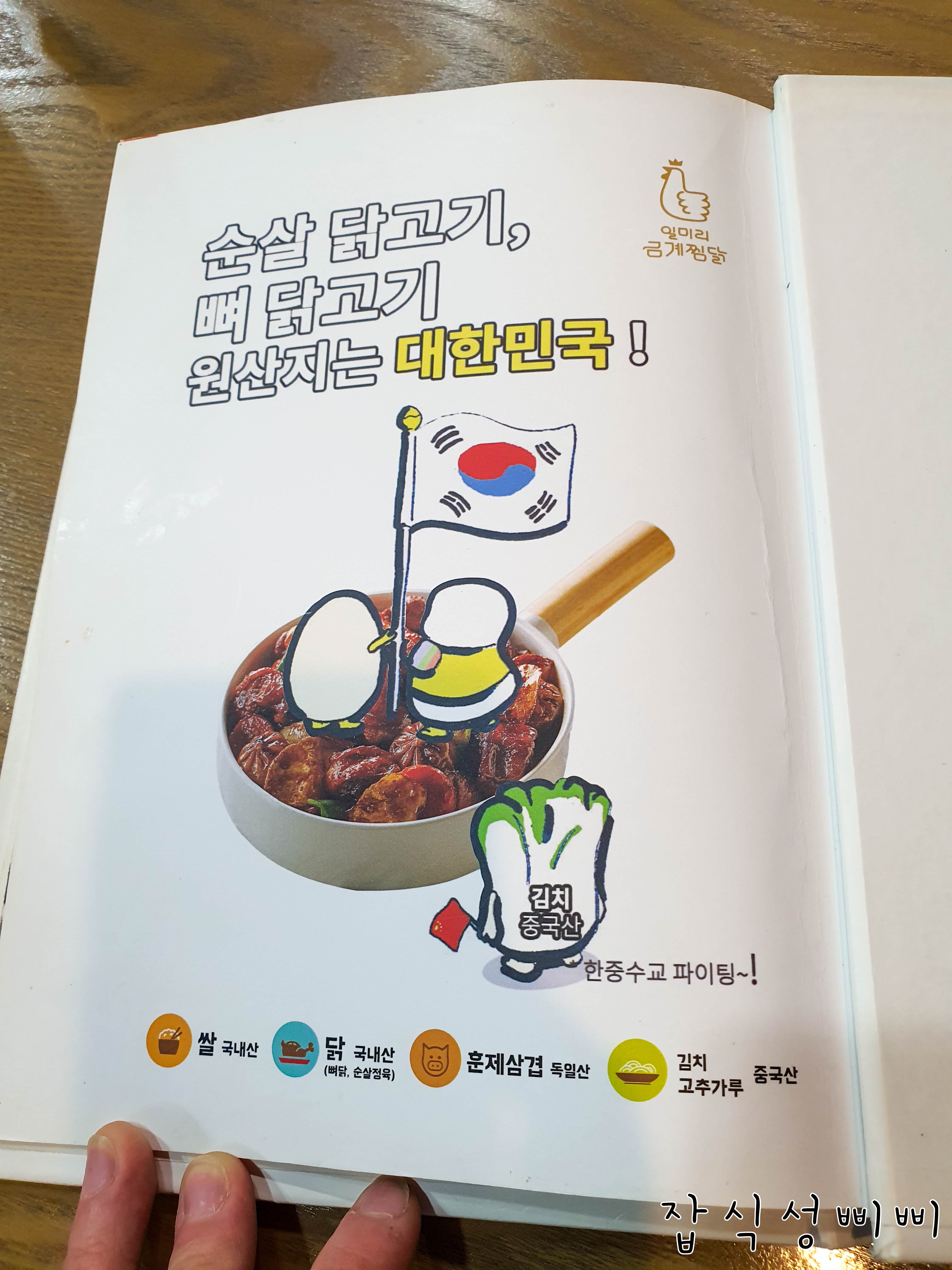 닭고기는 대한민국인데 김치는 중국산 ㅋㅋㅋ 사진으로 표현한게 넘 웃겨서 한컷 찍어봤어용 ^^