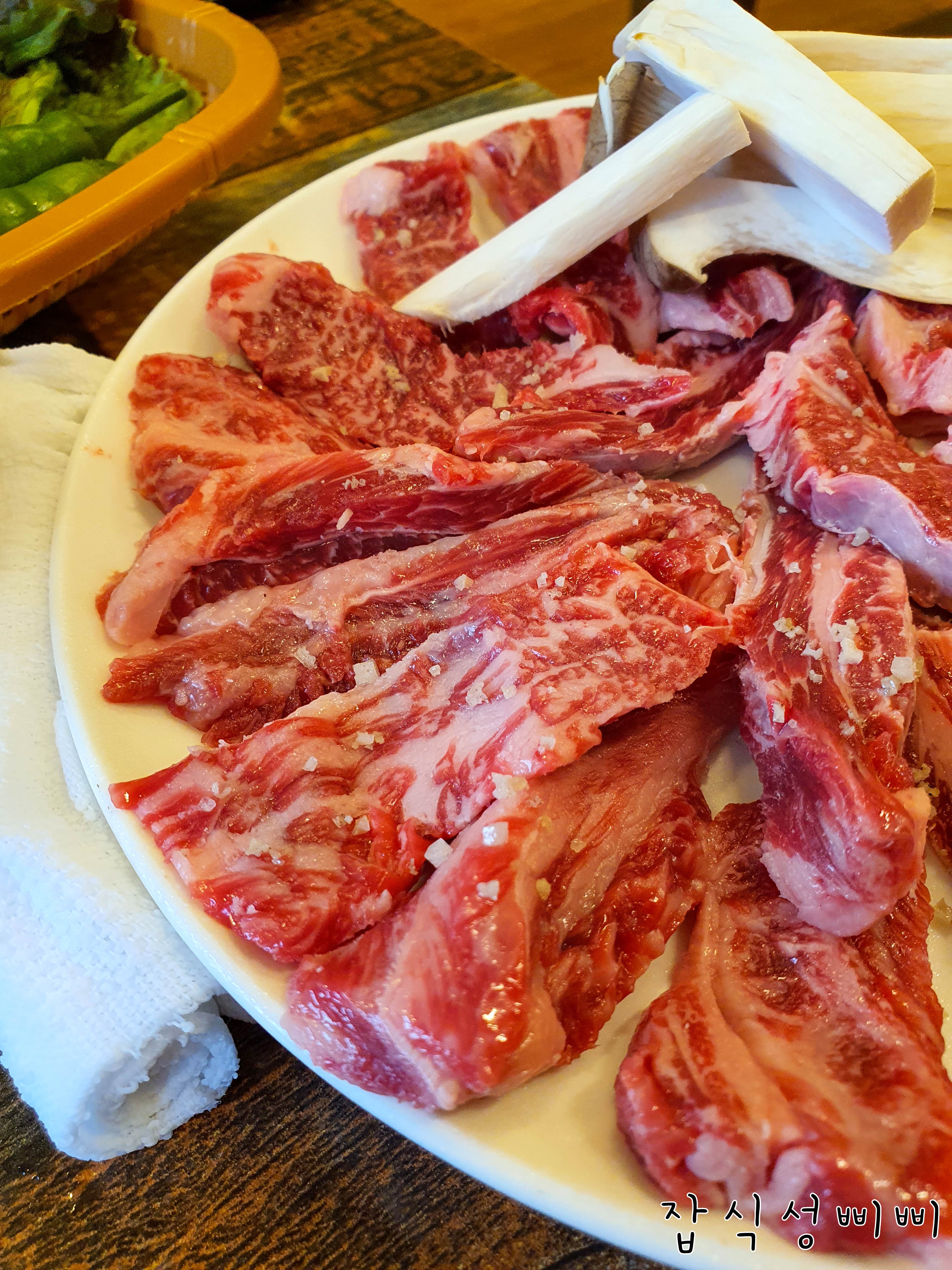 곱디 고운 한우 특갈비살~~~ㅎㅎㅎ 삐삐네 식구는 보통 5~6명이서 식사 많이 하거든요.