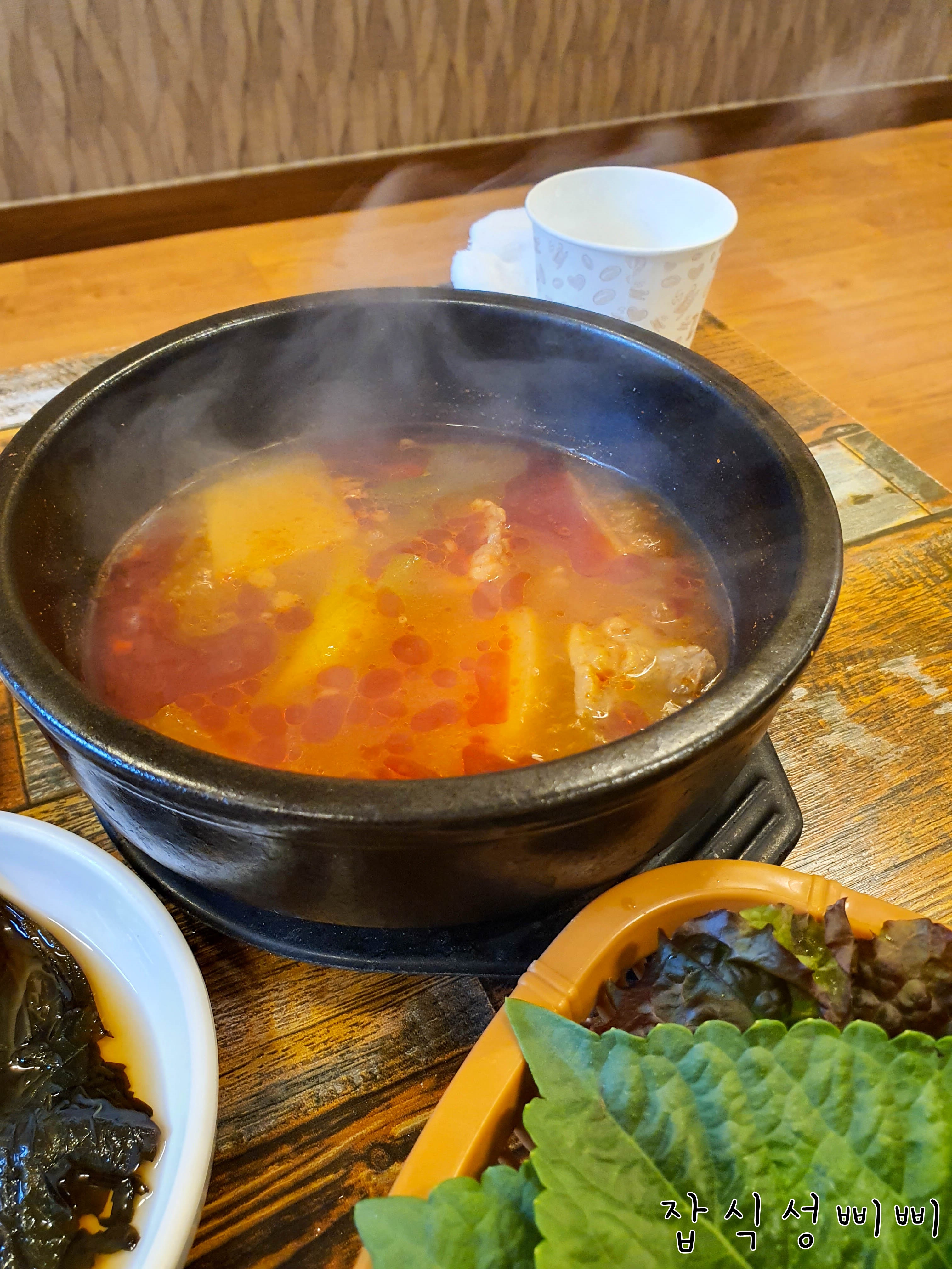 식사 중간에 기본 찌개가 나왔어요~ 특이하게 경상도식 소고기무국이 나왔네요!