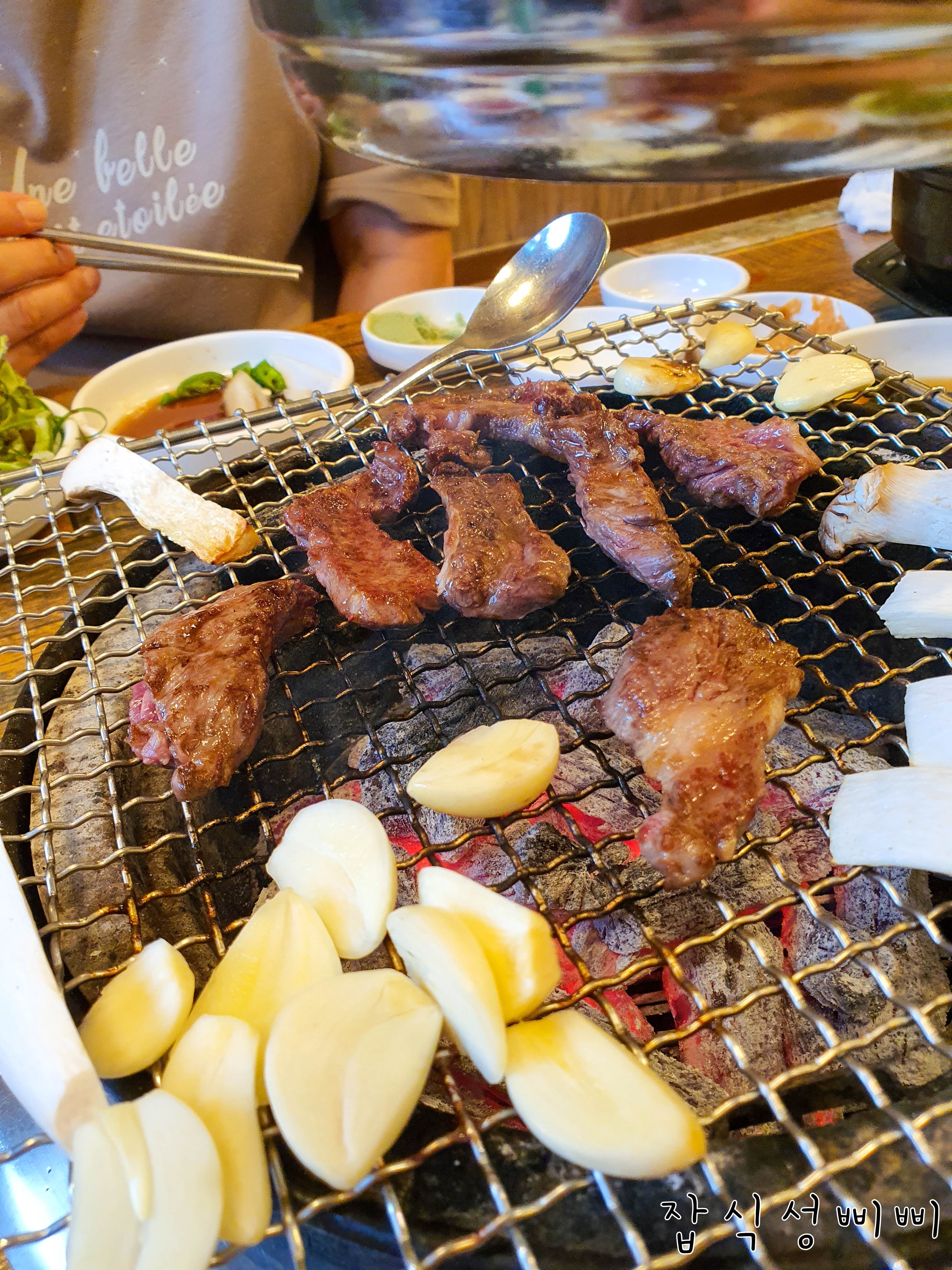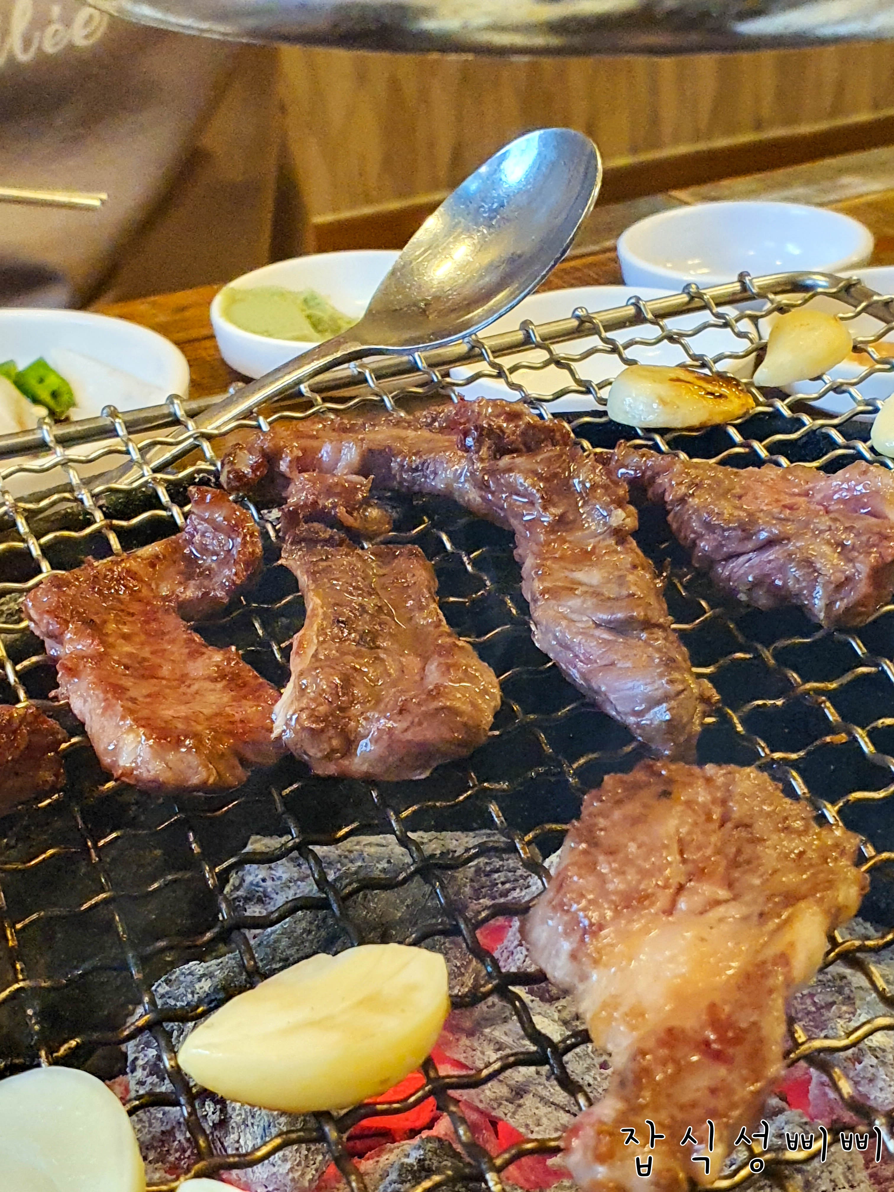 숟가락으로 고정해놓고 고기 구웠어용ㅋㅋㅋ 한우 갈비살 순식간에 끝나버렸네요 ㅠㅠ;;ㅋㅋ