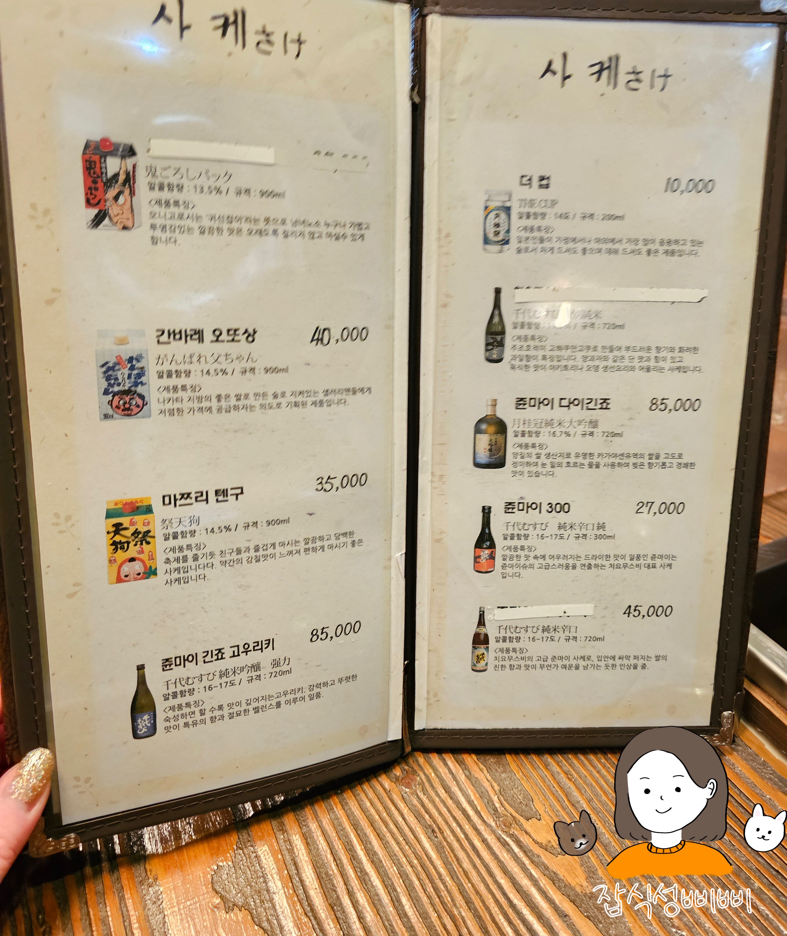 메뉴판은 주로 주류 메뉴입니다~ 오뎅바에 왔으면.. 사케를 마셔야 한다는 아빠의 의견에 따라..