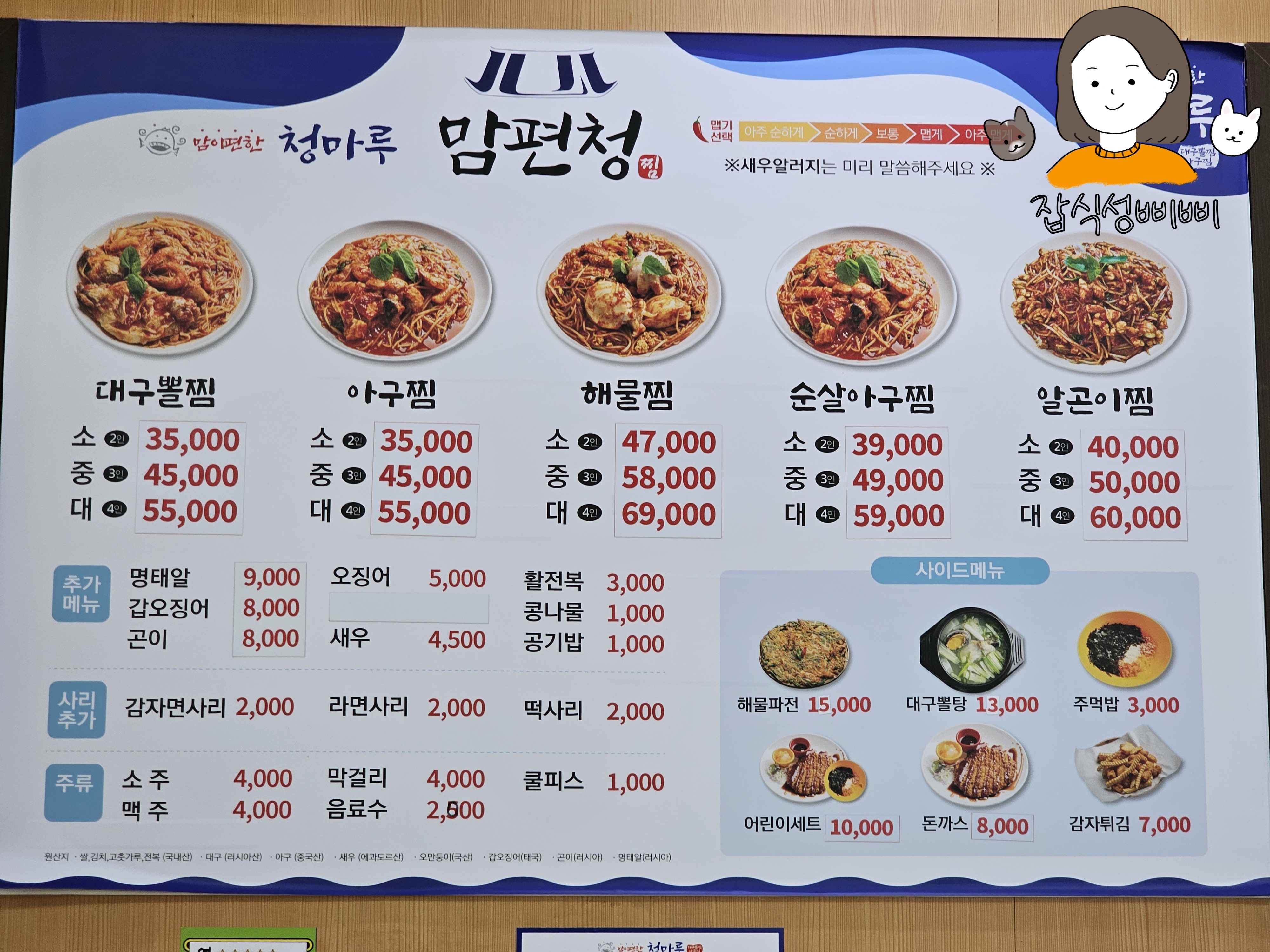 그래도 매장에 붙어있는게 맞겠죠 ^.^ 수월동에 위치한 청마루뽈찜은 관광객들뿐만 아니라 거제도분들도 많이 찾는 맛집인 것 같았어요.